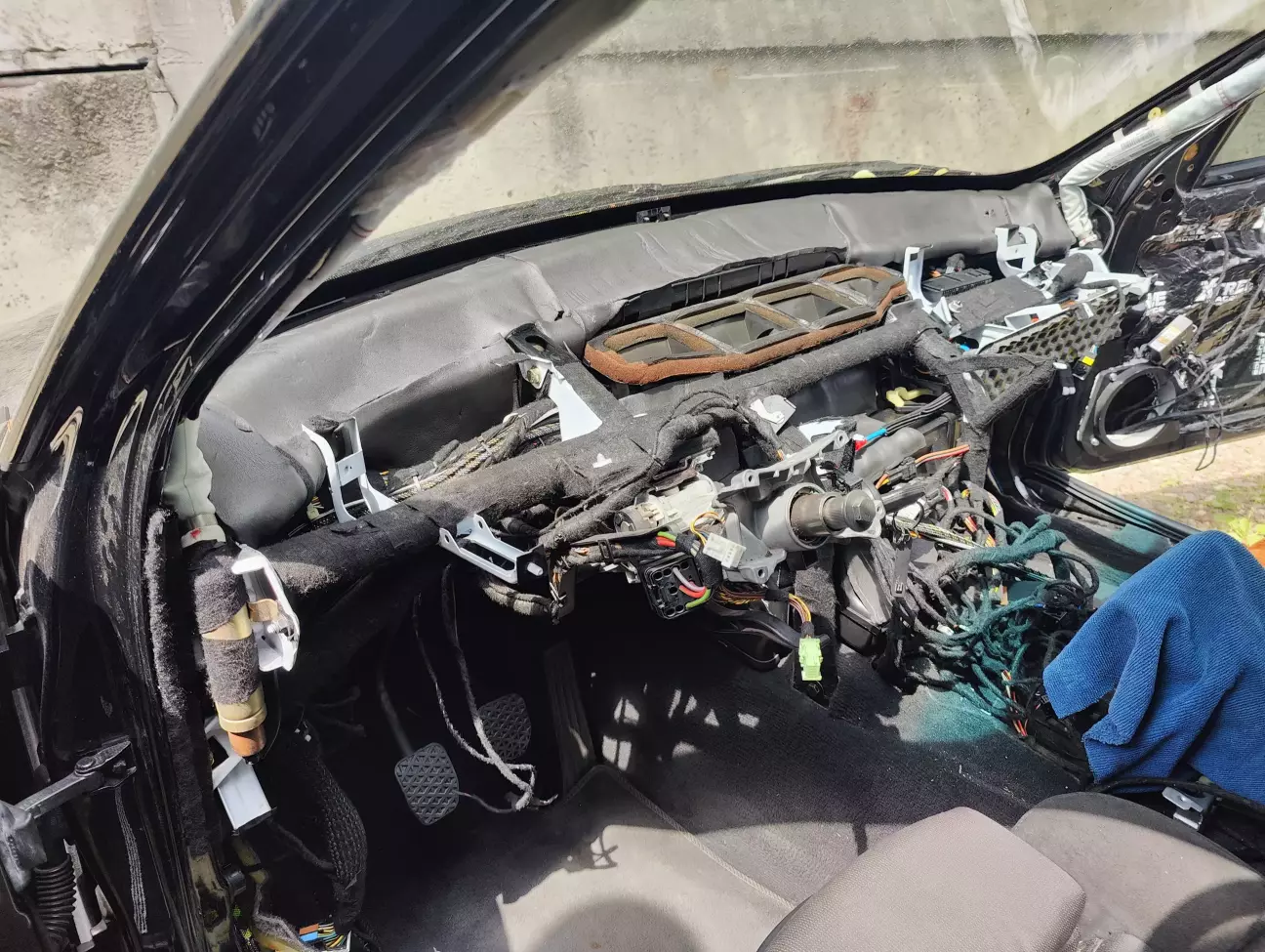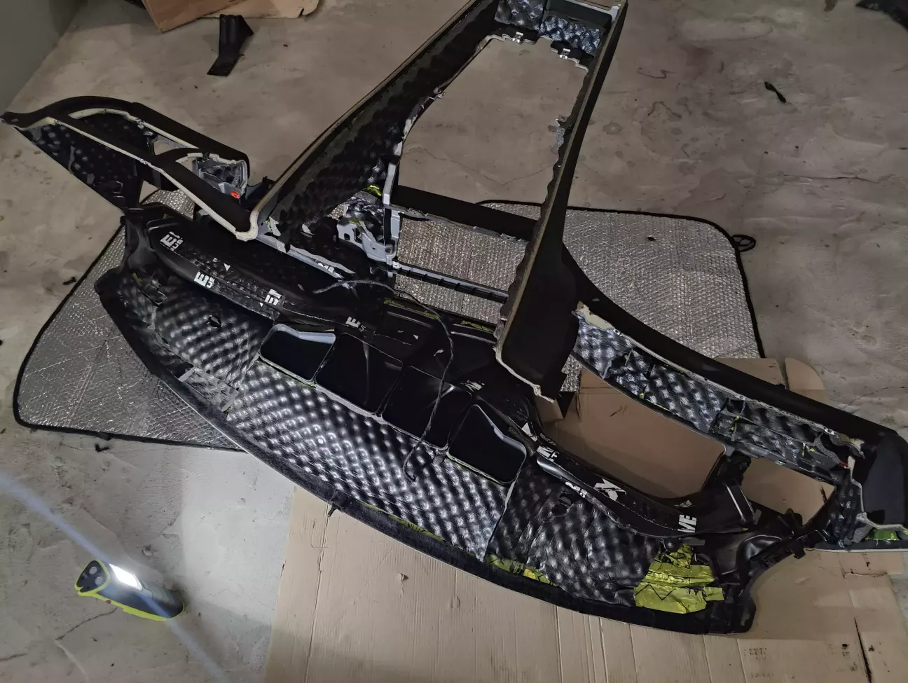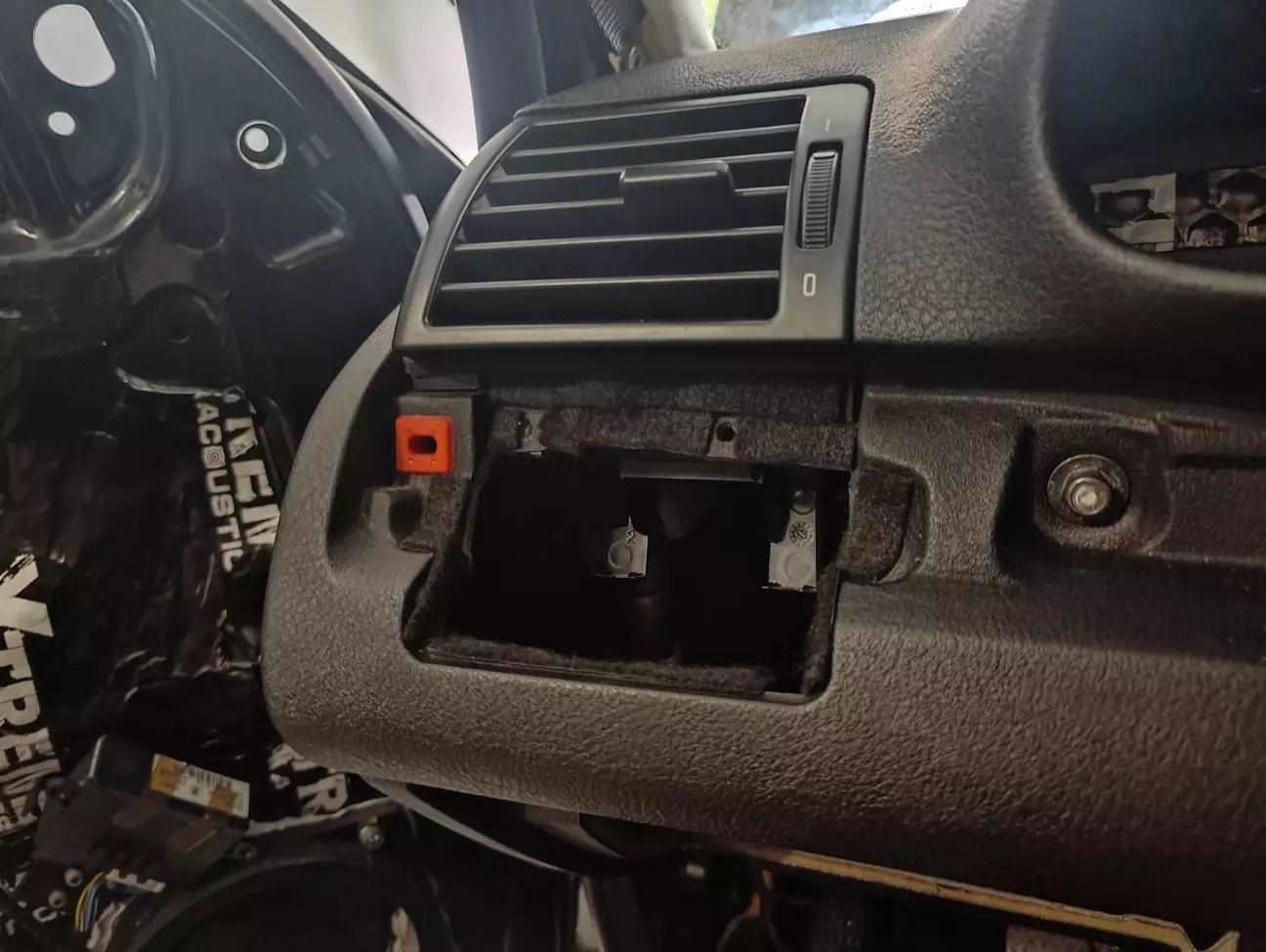 Потім мені стало нудно, було багато чого розібрано уже, і я зняв торпедо. Все обробив аналогічно (вібра, хвиля). А зі сторони кузову положив ще пару листків шумки Soft 6, що вдало знайшлась по місцю, бо замахало в 4 раз доставки платити). Загалом було б ефективно і круто зняти пічку, та все інше, прибрати заводський матеріал і повноцінно ізолювати моторний щит – але мені було чесно лінь лізти так глибоко, бо треба відкачувати фреон. Думаю моя робота дасть своє так чи інакше, та й все ж у Е46 то не слабке місце. Отже, обробив там все що можна, трохи обклеїв повітроводи, бо були вони дуже розхлябаними. Антискрип теж скрізь.