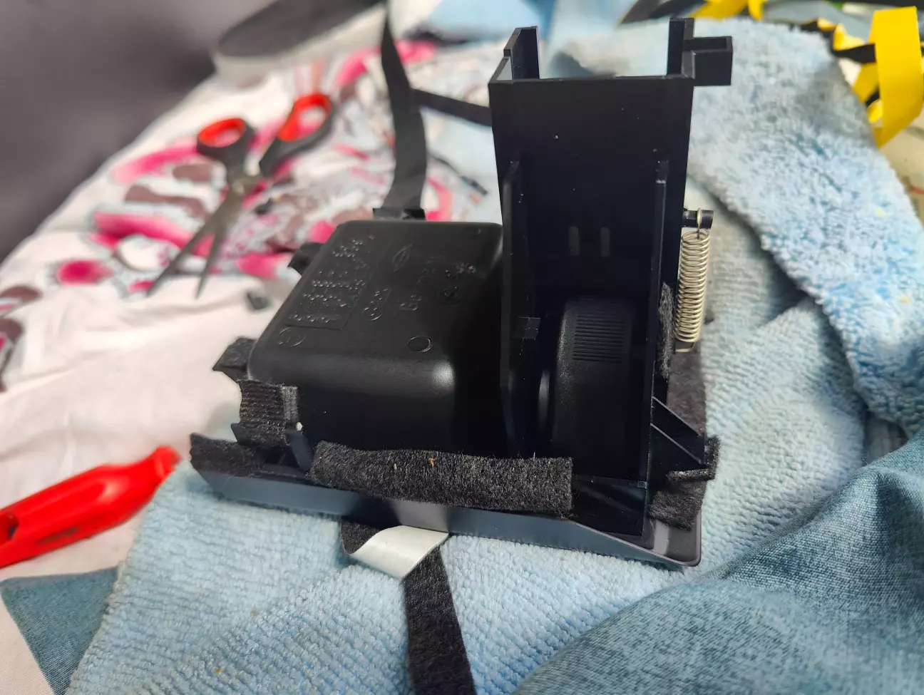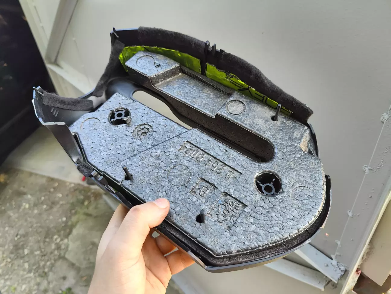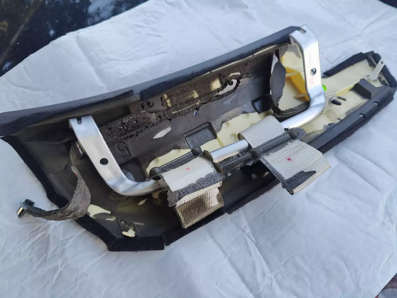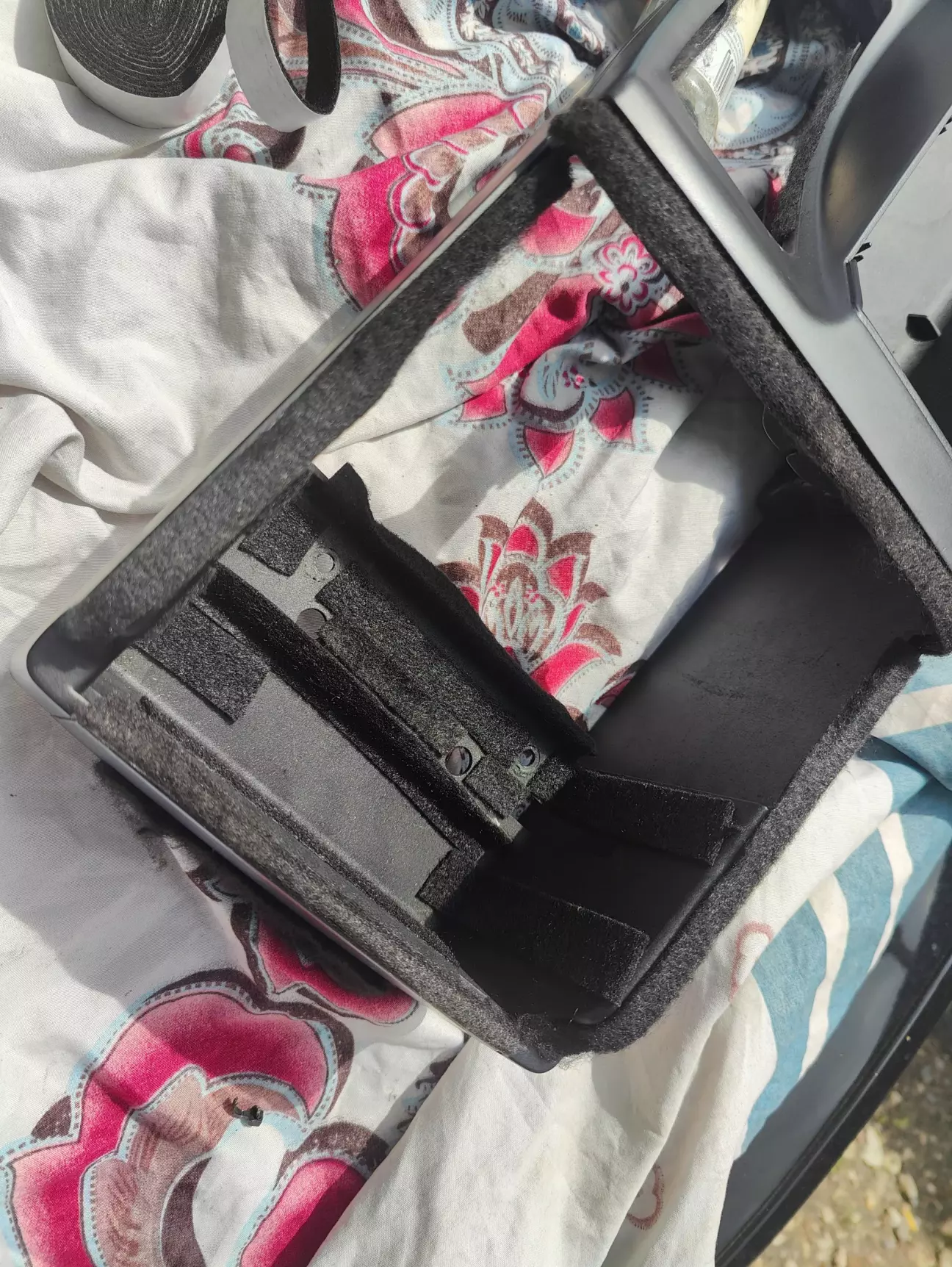 Ця штука хрустить у всіх Е46, в яких я був. Така конструкція. Розібрав повністю, обробив. Тепер краще, але він сам по собі треться, верхня панель об нижню – обклеїти там не вийде бо перестане закриватись легко, я тестував. Прийдеться з цим жити. Але благо уже не так як було по заводу, результат досягнений десь на 75%.