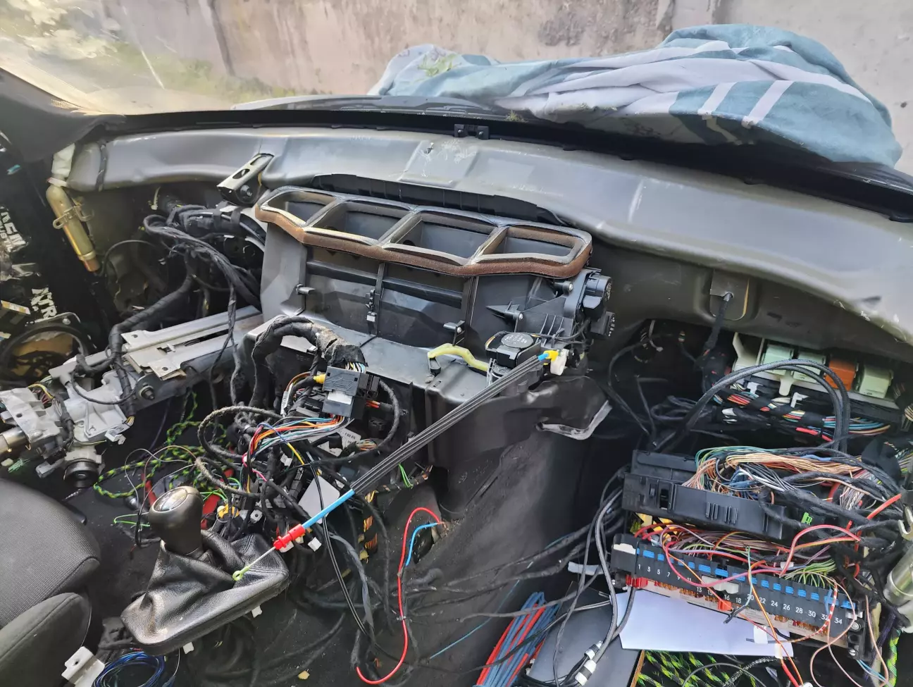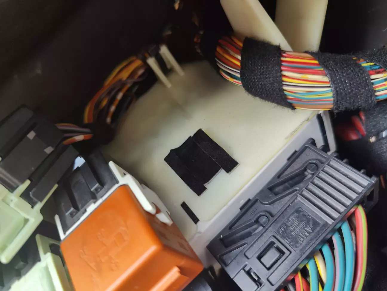 Також це мені допомогло зручно протягнути сигнальну проводку. Але то в наступному пості для логічнішої структури… Пічку теж завібрив на всякий, що добру пропадать, хехех. І заантискрипив все що міг. Кожне реле, блок зеркал, що залишився від стокової опції складування, мої додаткові реле на омивач фар та регулювання заслонки вихлопа, блок комфорту – все обробив, щоб сиділо плотно в своїх місцях. Мої численні дооснащення мали сліди у вигляді пари не дуже по заводському протягнутих проводах в блок запобіжників та чорну коробку, бо доступ туди не самий простий. Так що все що потрібно переобжав, переробив і завів як вимагає того книга. Люблю кабельний порядок… Загалом на проводку пішов не один робочий день в гаражі.