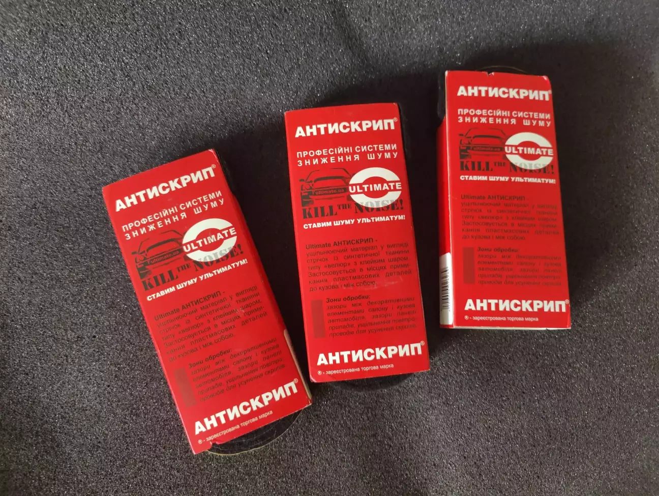 Два купив нові, тепер тільки один виходить залишився старий і той вже куплений. Тут клеїти вібру та шумку нема куди, і нема сенсу, тому тільки антискрип.