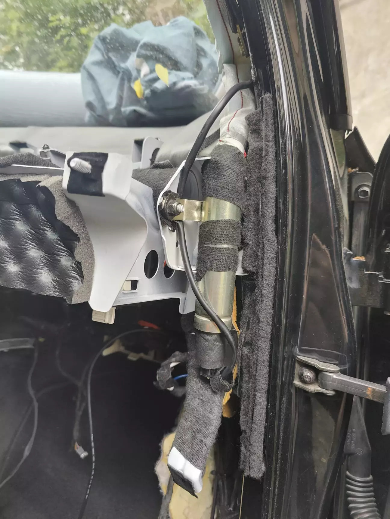 Коли обробляв передні двері, залишив проводку назовні і виглядало не так естетично. З задніми зробив інакше і все заховав всередині. Всю проводку повністю перемотав в нову стрічку на всякий випадок.