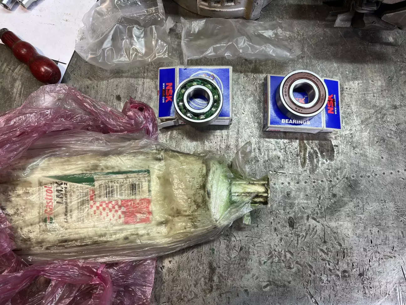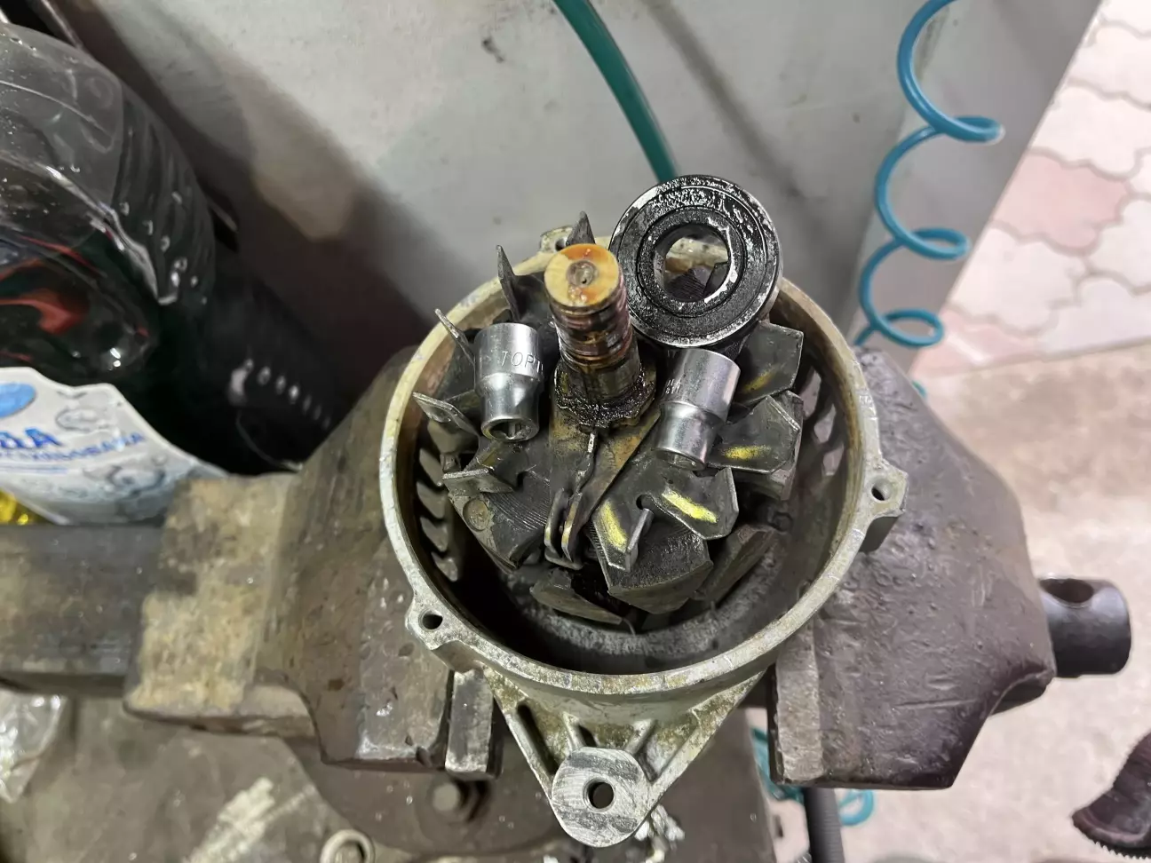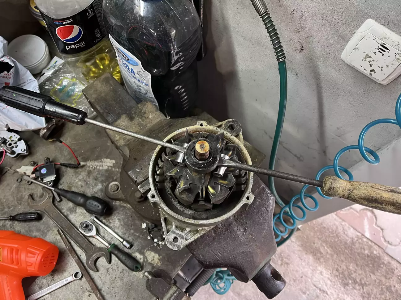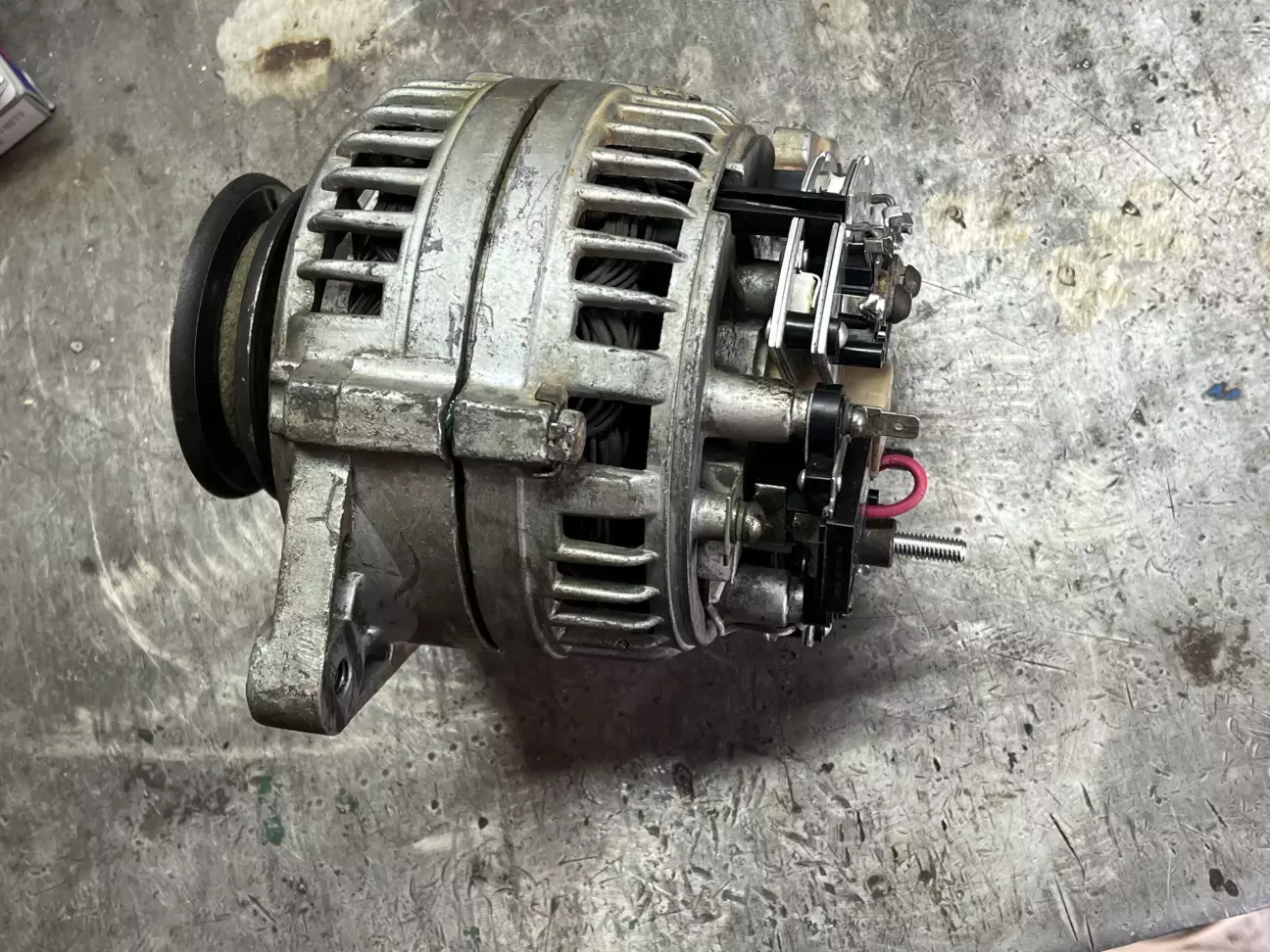 Передісторія така - коли купив машину,не було збудження на генераторі,поки не газнеш до 3000 - 3500 об/хв , не було зарядки та світилася лампа зарядки червоним,після того як газнув ,лампа гасла та зʼявлялася зарядка. Звісно,це не діло ,помоніторив цю тему ,знайшов інформацію що можна обдурити цю хворобу,підкинув окрему лампочку безпосередньо на генератор ,завдяки якій з’явиться збудження а лампа у панелі приладів буде відігравати суто інформативну роль . Сказано ,зроблено (на фото видно додаткову лампу ). Друга проблема була у тому що зарядка не піднімалася більше ніж 13.6 - 13.7 В . Цю проблему вирішив підкинувши додатковий діод,після цього зарядка піднялася до 14.3 - 14.5 В ,але при включенні споживачів ,таких як пічка ,головне світло ,стопи ,обігрів заднього скла ,напруга відчутно просідала ,хоча і не критично ,нижче 13.5 не падала (це з додатковим діодом ). Їздив так і особливо не парився ,єдине про що постійно думав ,то про те що їжджу без задньої захисної кришки генератора ,бо усі ті дроти що я там накрутив не давали їй сісти на своє місце ,дуже вже там все компактно. І ось нещодавно почув з під капота сторонній шум при працюючому двигуні,огляд виявив що звук йде з генератора ,почав шелестіти ,тому вирішив зробити ревізію генератору . Ну а якщо вже повністю знімати генератор,то вже можна спробувати вирішити проблему з зарядкою та збудженням. Купив новий діодний міст від ВТН ,два підшипника NSK (маде ін джапан) ,дочекався більш-менш хорошої походи і за діло..
