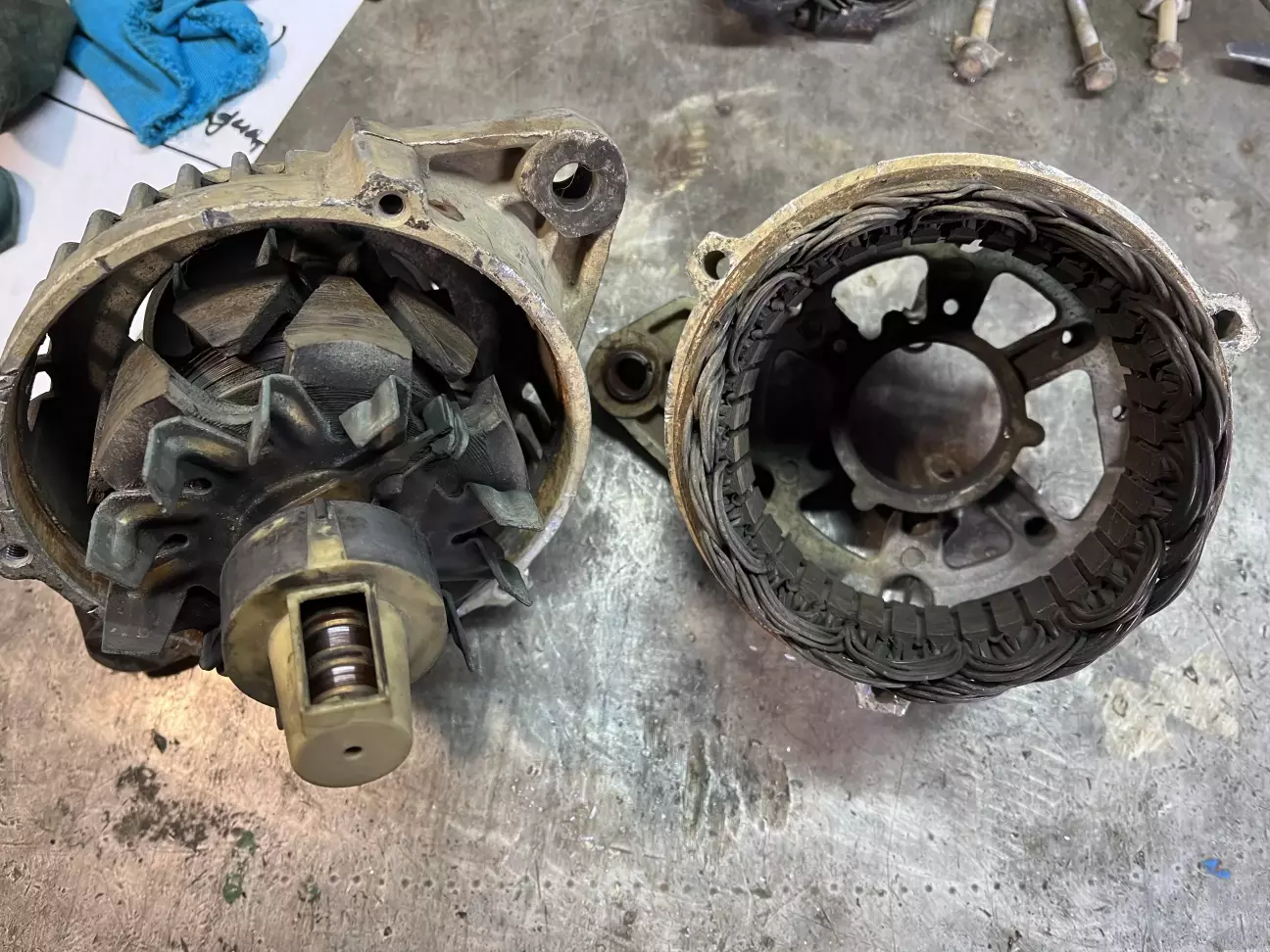 Зняв генератор з машини та почав розбирати. Як виявилось ,до мене у нього ще ніхто не лазив . Розколоти його був ще той квест ,трошки помучався ,але впорався. Після того як генчік був розібраний,огляд запчастин ,ревізія та мийка / чистка всього що у ньому є . Рідні підшипники видавали шум навіть від провертання рукою ,коли зняв пильовик підшипника,побачив там замість змазки щось більше схоже на засохлий гуталін ,щось чорне та тверде.. Нові підшипники теж повскривав та додав потрохи змазки у них ,без фанатизму ,хоча вони були не сухі . Контактні кільця вже теж виглядають стомленими,але щось мені цього разу не дуже хотілося бавитися із паяльником,та і у мене їх не було у наявності,то вже буде наступного разу ,тому рідні ще походять .. 😀 Далі збірка того що розібрав у зворотньому порядку,встановлення на машину і … Фіаско… Зарядки немає ,збудження немає .. Приїхали..🤪 Я ж зібрав генератор,поставив на місце захисну кришку та встановив генератор без усіх тих прибамбасів що ліпив раніше. Короче лізу під капот та ставлю на місце дріт до клеми від лампочки для збудження,запускаю двигун і о диво ,збудження є ,зарядка є ,шорхіту від генератора немає .. Походу перемога . Але .. Була зарядка з додатковим діодом 14.5 ,зараз без нього з новим діодним мостом 14.2 В ,при вмиканні усіх можливих споживачів ,показники зарядки падають до 13.4 -13.5 В . Хз ,поїжджу так ,поспостерігаю ,головне що захисна кришка тепер на своєму місці 😅 Знайшов на Ютубі декілька відео ,там хлоп перевіряє мультіметром на працеспроможність ротор ,статор та діодний міст,перевірив все своє ,моє у повному порядку ,навіть діодний міст ,на який я грішив .. Єдине що ,діодний міст я перевіряв вже помитий та почищений ,а до цього на декількох діодах були окислення,треба було до мийки перевіряти ,але щось протупив .. Ну ось власне і все ,якщо будуть питання ,велкам у коменти . Ціна питання :