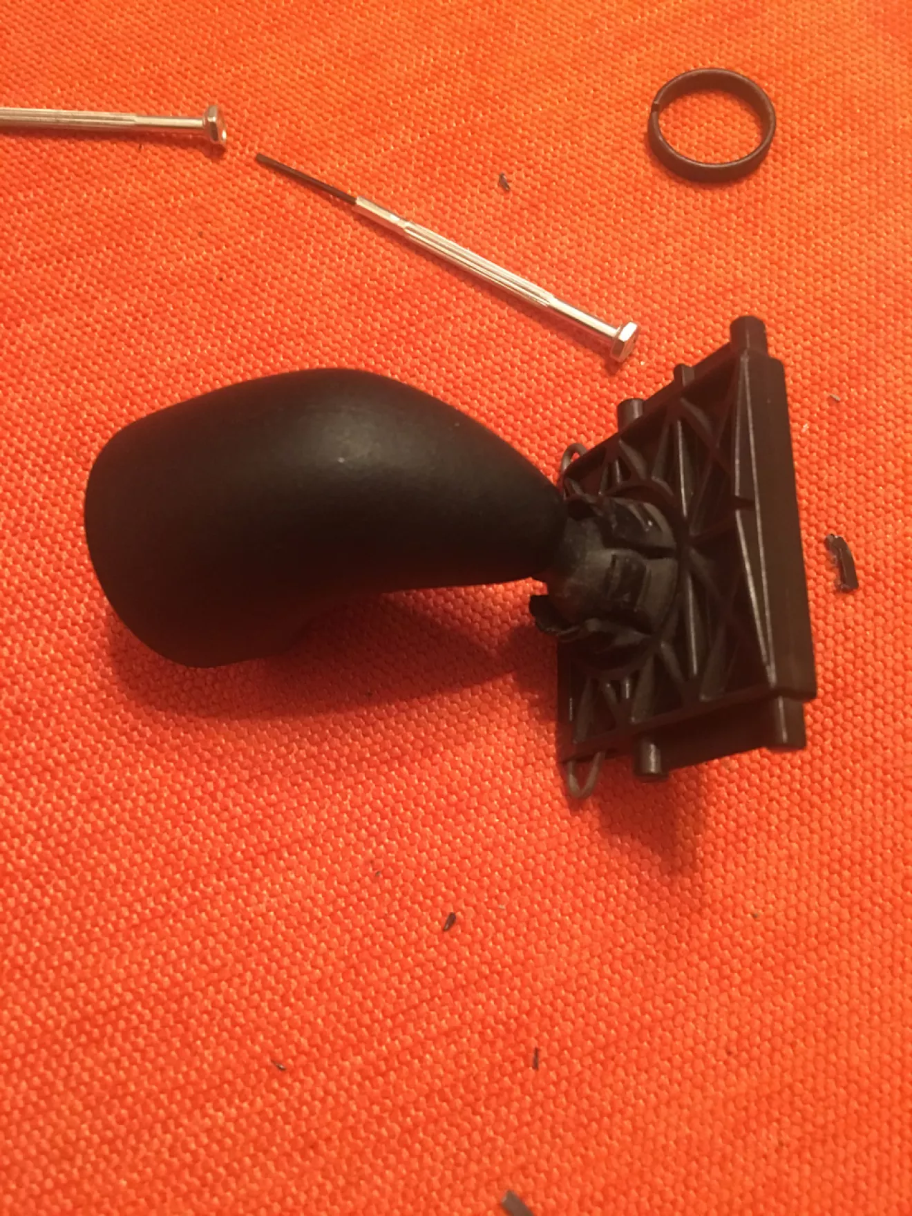 4. Теперь творческая задачка) необходимо подогнать/подточить/подрезать обойму шарнира старого зеркала под корпус нового зеркала. Естественно я немного размеры пролюбил)))