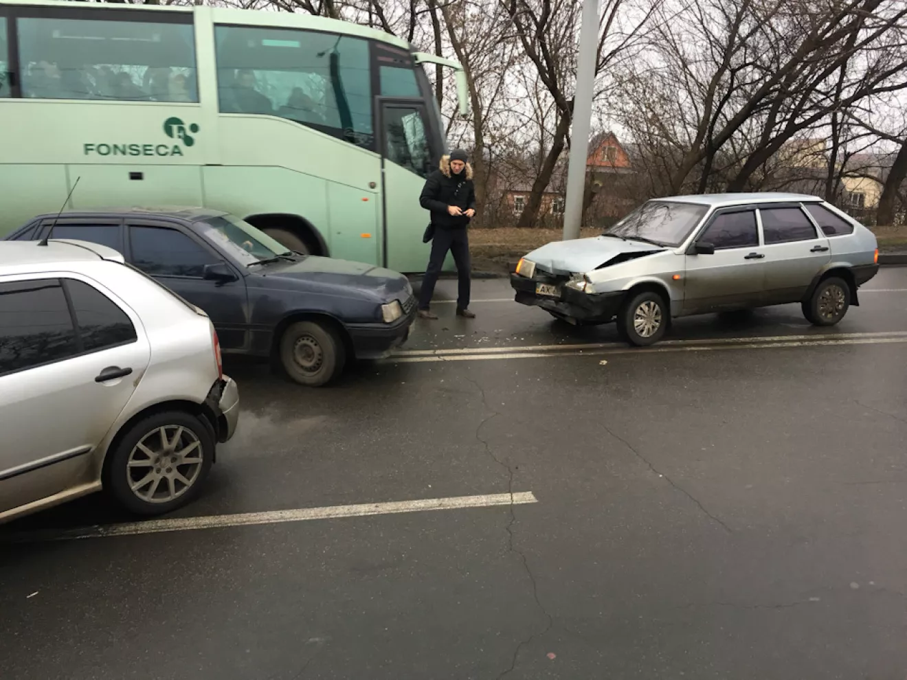Писать особо нечего. Ситуация банальная… Пешеходный переход. Собачка которая выгуливает хозяина. Десятка подрезала мерседес. Мерседес вытормозился. Я вытормозился. Девятка тоже, но в меня.