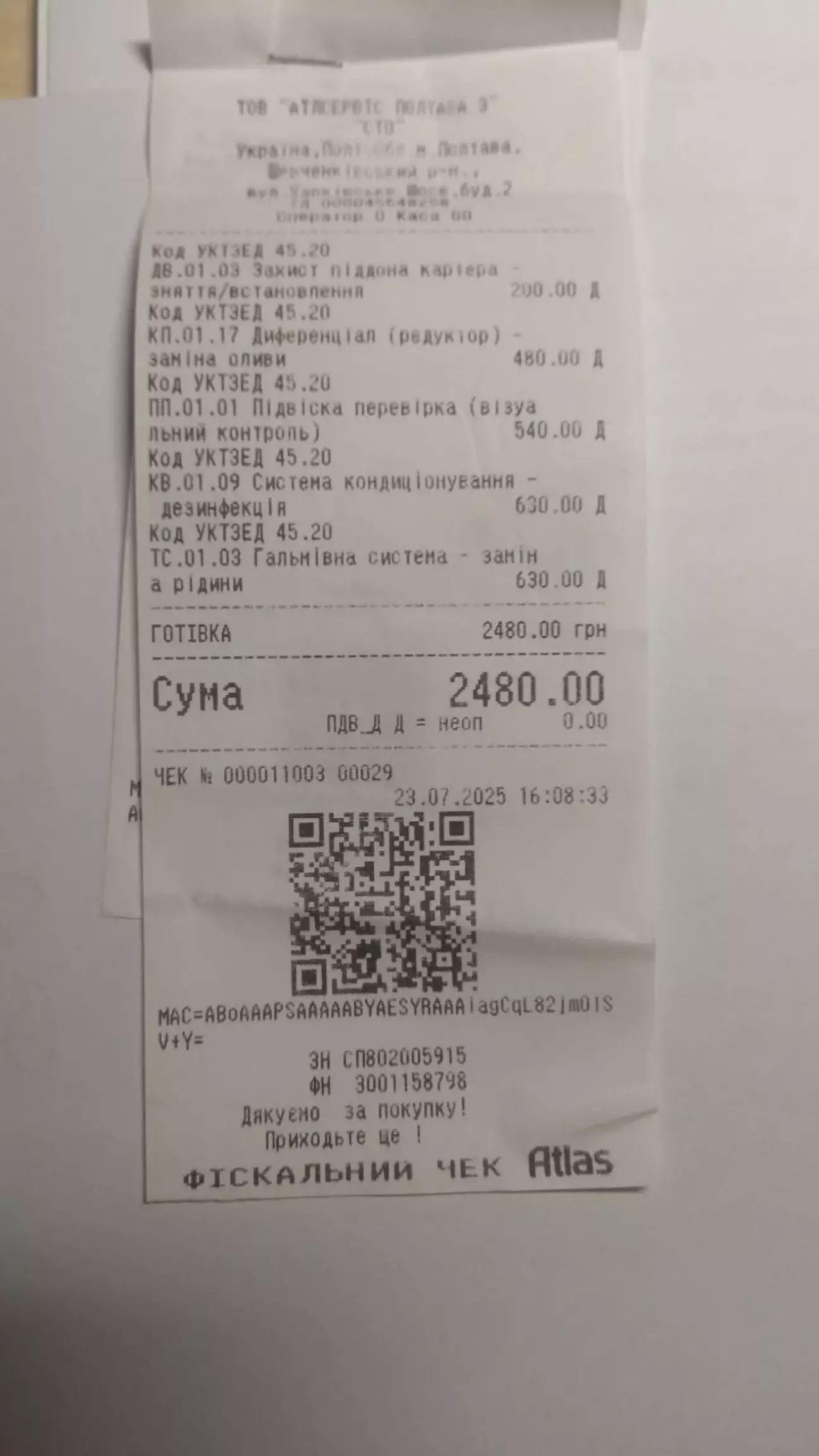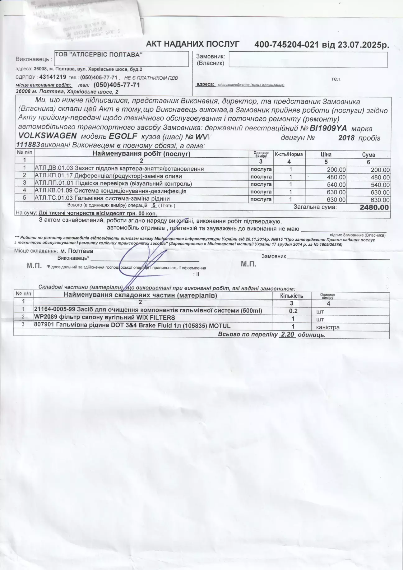 Замітка для себе коли проводилося крайнє ТО попереднім власником.