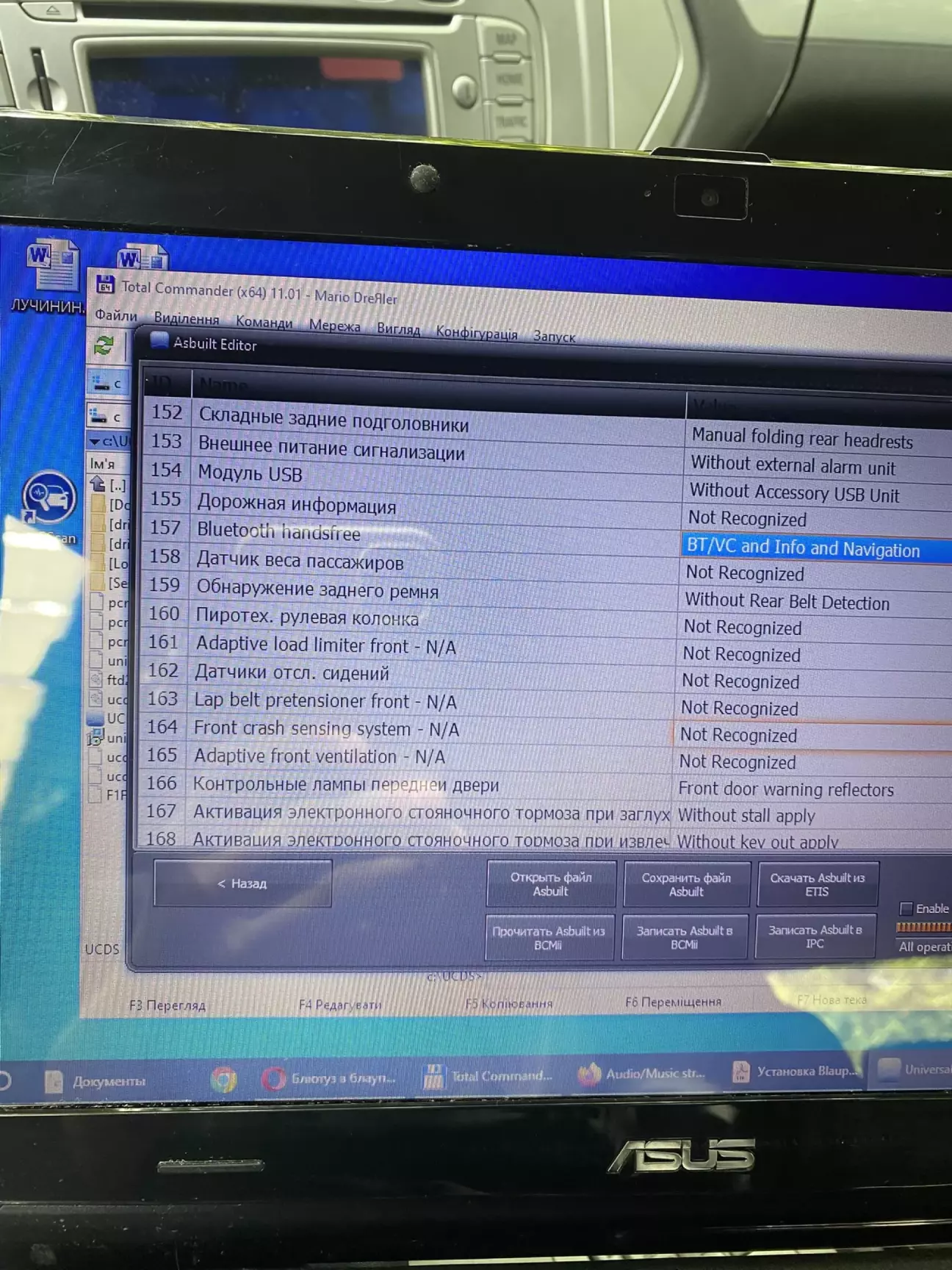 Тож, взявши ноут та UCDS змінюємо параметр під №157 в позицію BT/VC and Info and Navigation.