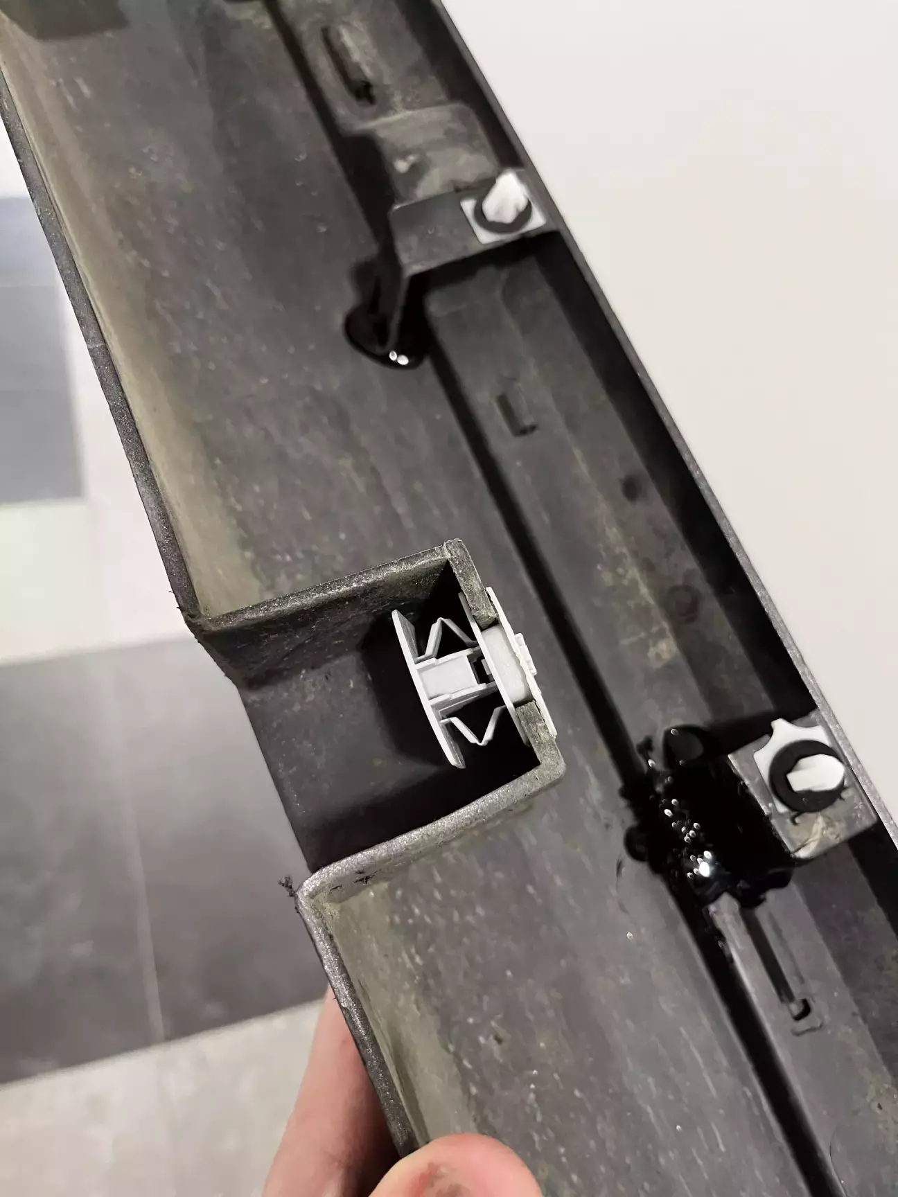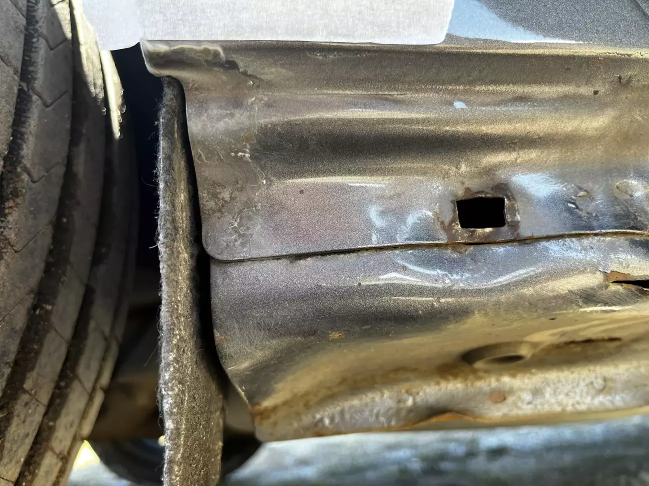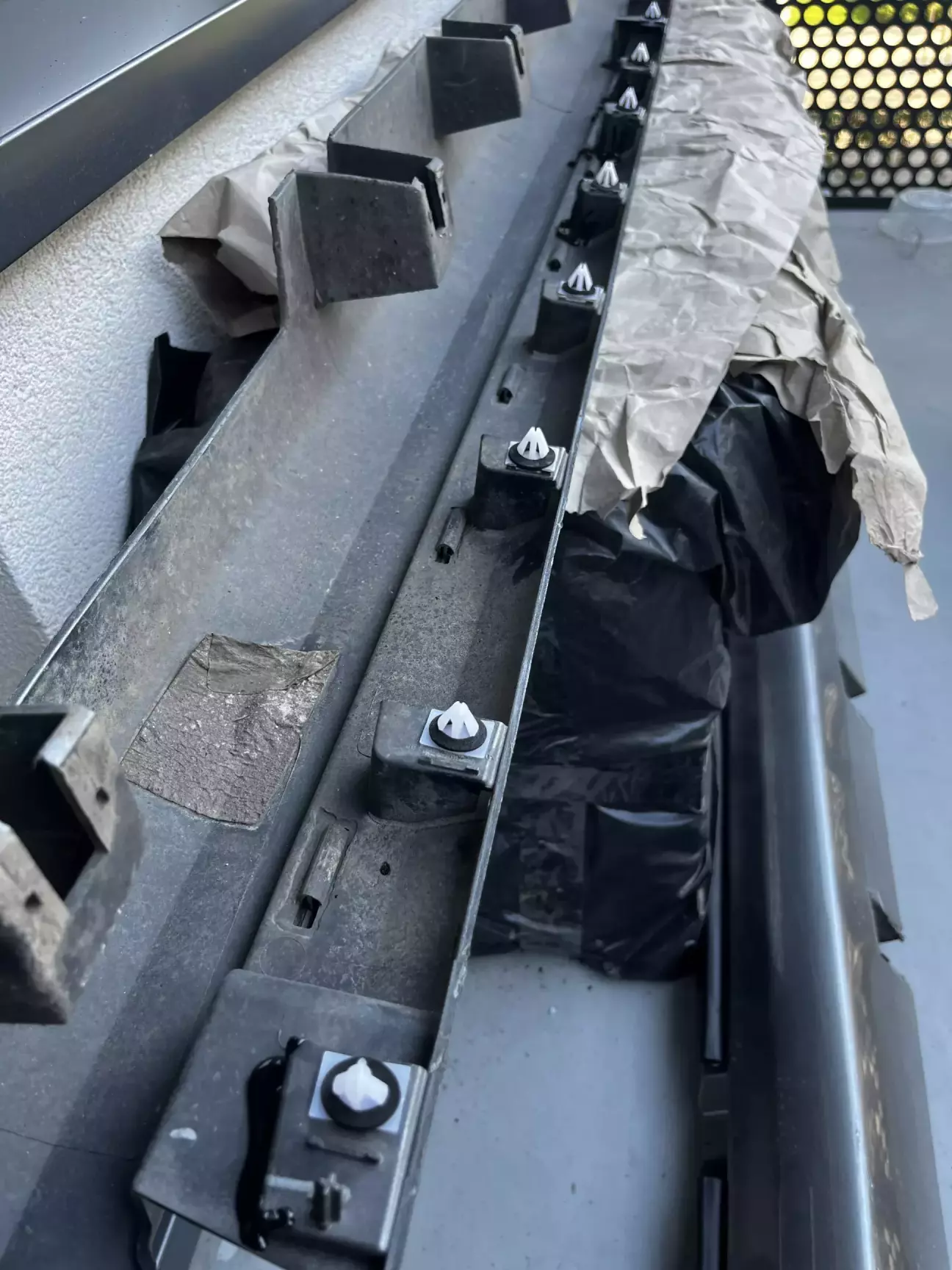 У меня одна накладка уже снималась кем-то раньше: многие крепления были оторваны. Вероятно, из-за этого накладка и протёрла металл.