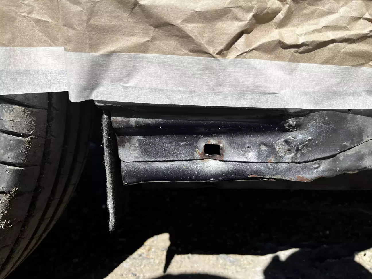 Остальную часть порогов также зачистил местами от ржавчины, обезжирил и покрыл антигравием.