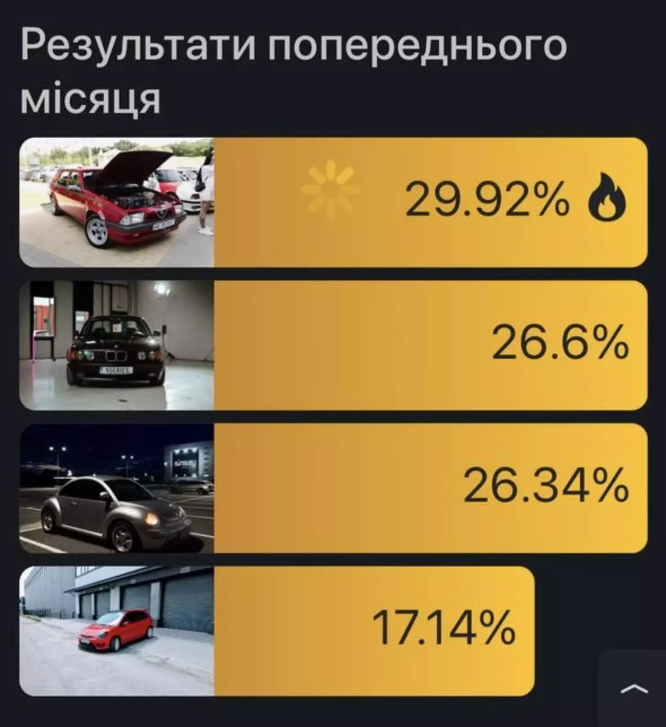 Просто моєму Жуку, видно, ще треба трохи підкачати харизму й дорости до першого місця 😎 Значить, далі працюємо над ним, ростемо і набираємося досвіду 💪🚗✨