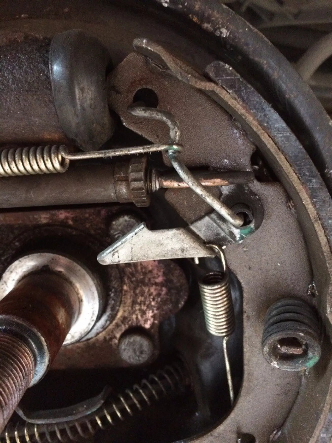 Решил заменить старые колодки на новые (RIDER RD2638GS8760), подумал каких там проблем, созвонился с своим наставником :) chaos2522 разобрали поменяли, все собрали и укатили по домам. На следующий день выехал, прокатился по брущатке, и тут коллапс, слышу скрежет жесткий хруст, звуки на столько стремные, что ехать дальше не хотелось. В общем докатился до пункта Б. Снял колеса, тормозные барабаны и вижу картину, усик отпал с механизма подводки колодок, на обеих сторонах, в добавок некоторые пружины по слетали. В итоге все исправил, собрал. И поехал на проверку, на туже брущатку. Ситуация повторилась, долго ломал голову почему так, потом как оказалось пришлось добавить одну позицию в эту всю систему, это самоконтрящаяся шайба для усика. Подумал все конец проблеме. Но не успел отъехать, первая кочка и опять та же ситуация. Нервов в итоге потратил не мало, подумывал нафига вообще туда полез, собирая разбирая повторно и снова и снова. В итоге разобрал все по новой, положил старую и новую колодку перед собой и тут меня осенило, и вижу что новая колодка отличается от старой, из за чего появлялся люфт и усик западал за вилку и в итоге соскакивал. До этого момента уже купил рем комплекты, так как один усик уже лопнул и думал может еще запчасти износились, да поменять все под чистую. И в итоге не зря, в них присутствовал спец зажим, благодаря которому решил проблему. Его действие как раз на то чтоб закрыть тот самый зазор за который западал усик. Конец, Ура :)