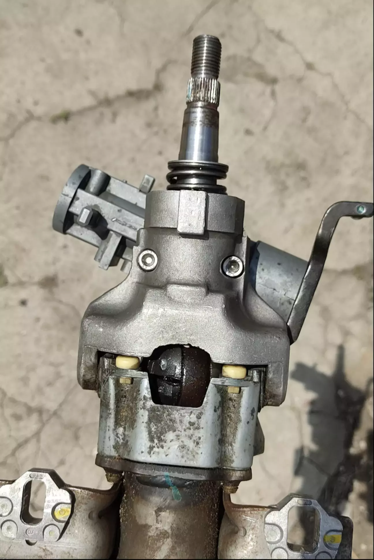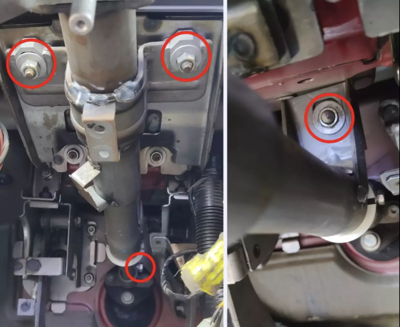 Ключом "на 12" или торцевой головкой "на 12" откручиваем две гайки крепления рулевой колонки к панели приборов, одну гайку нижнего крепления и болт (нужно полностью вытащить) соединения рулевого вала с эластичной муфтой. Теперь рулевую колонку можно снимать.