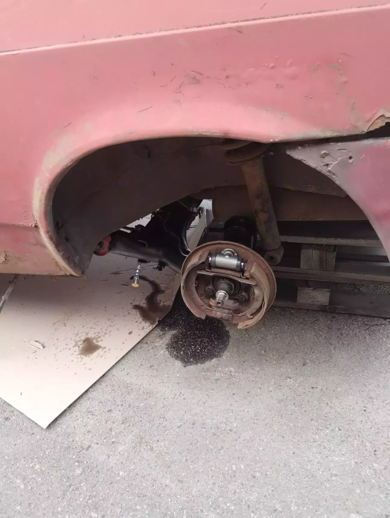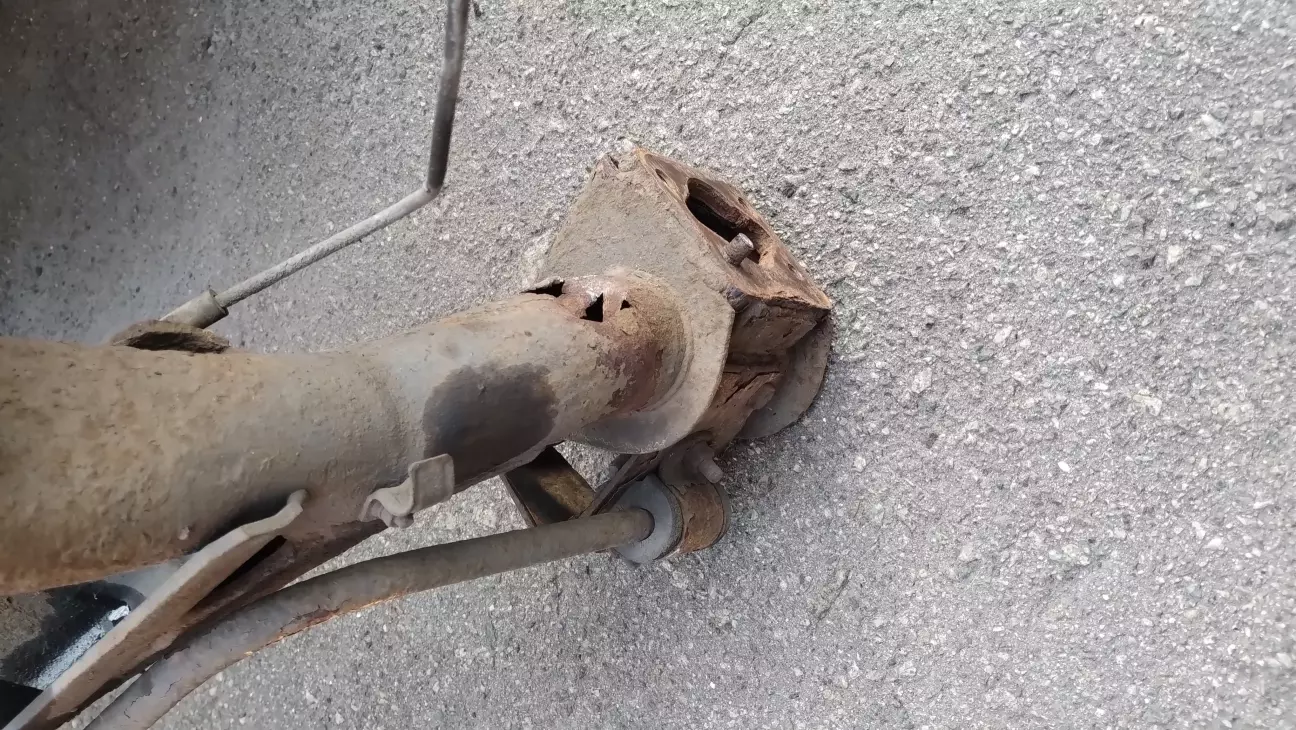 Щось вже дуже давно помітив шкрябання лівого заднього колеса по арці,але нема коли було детально роздивитись проблему.і ось на початку літа приїхавши на роботу звернув увагу що заднє колесо стоїть враскарячку,як на дріфтовій тачці.висновок один-балці труба)))