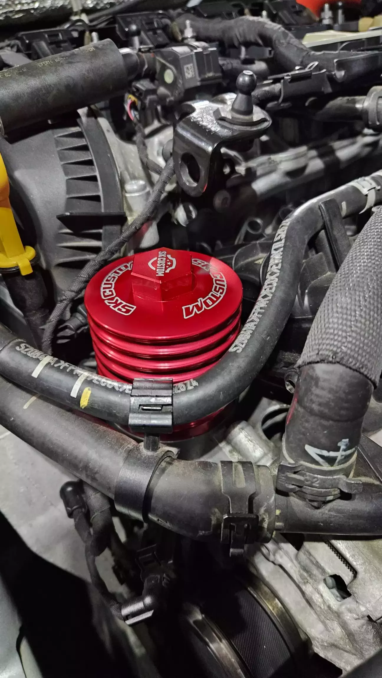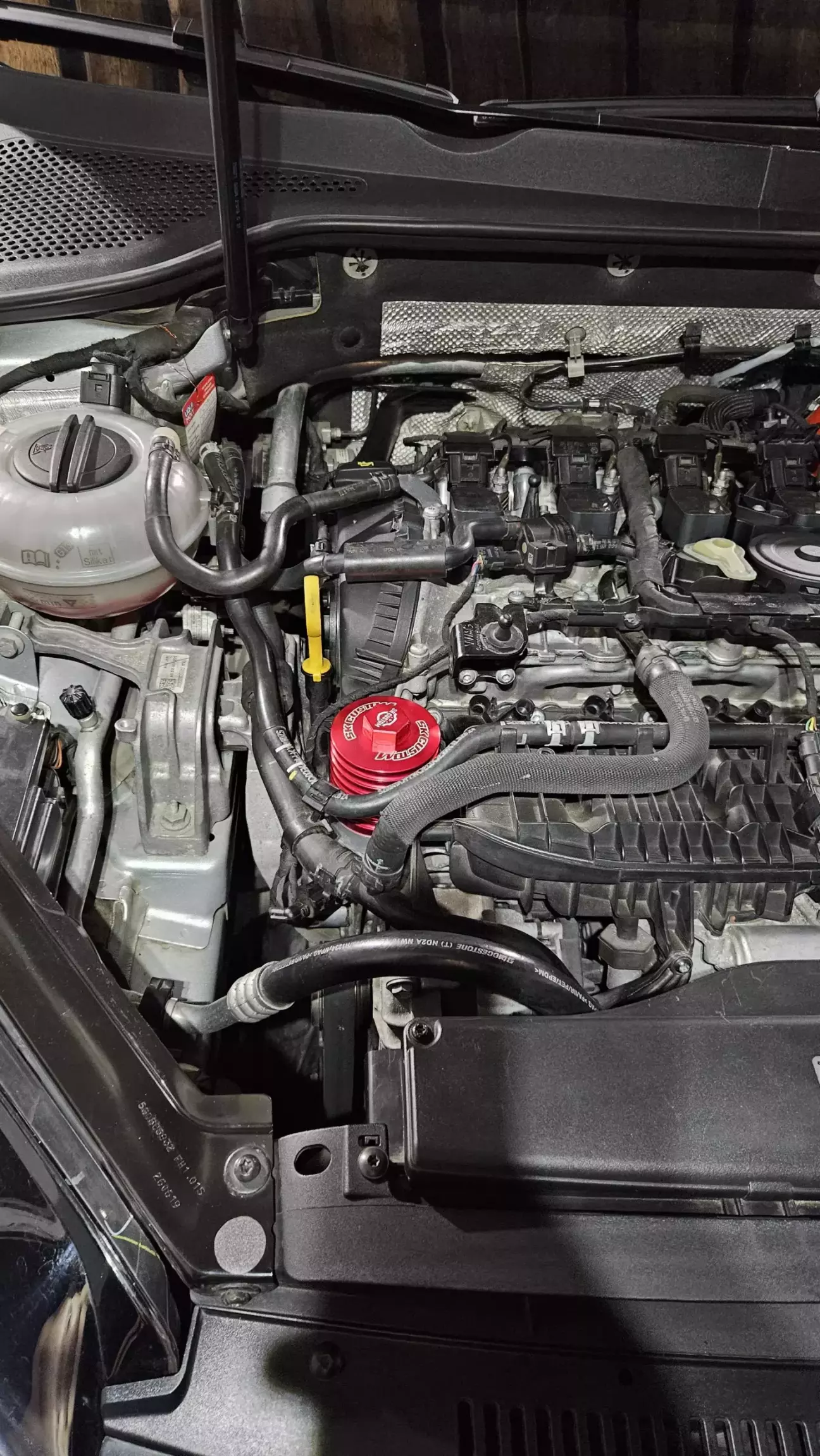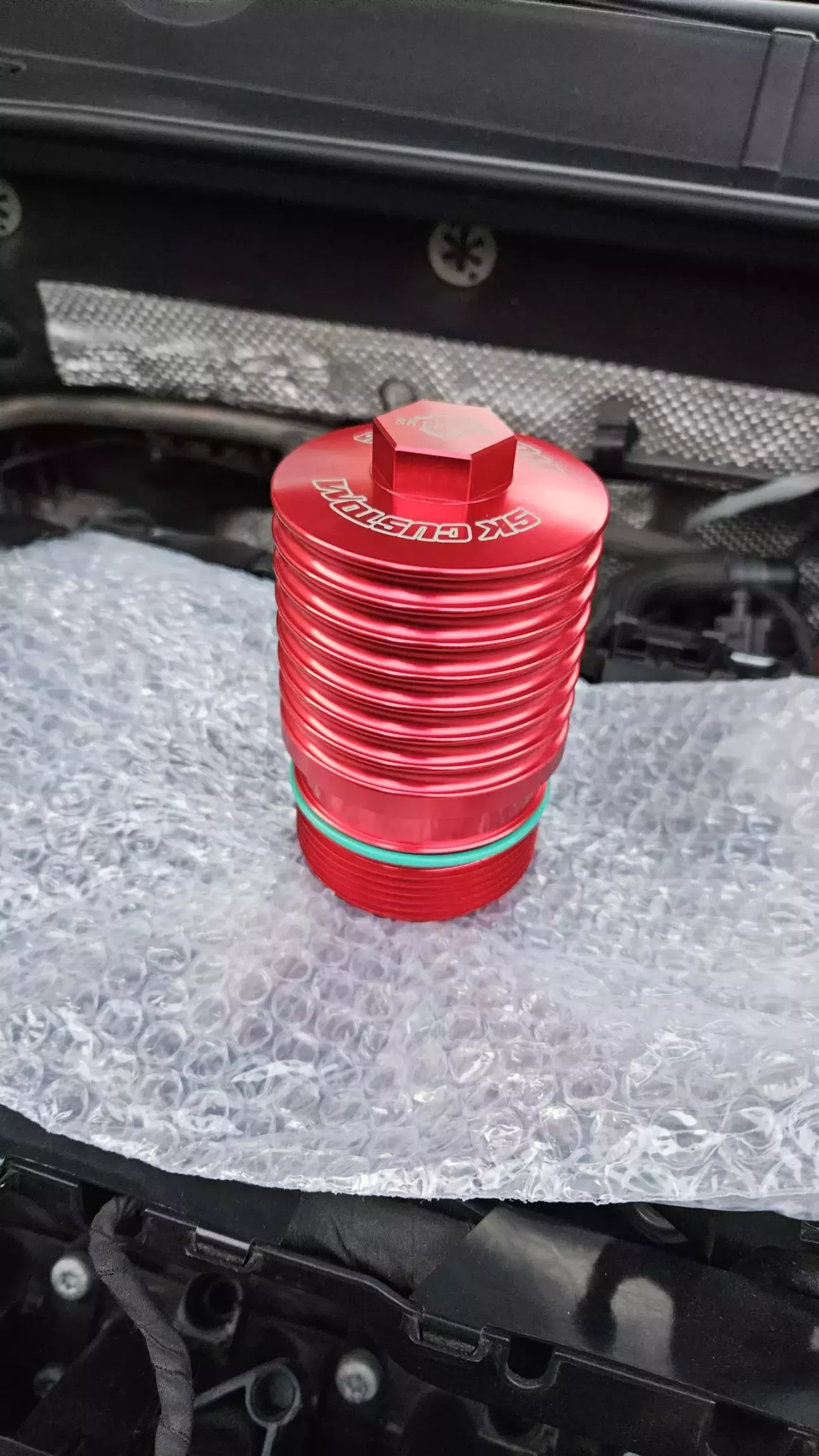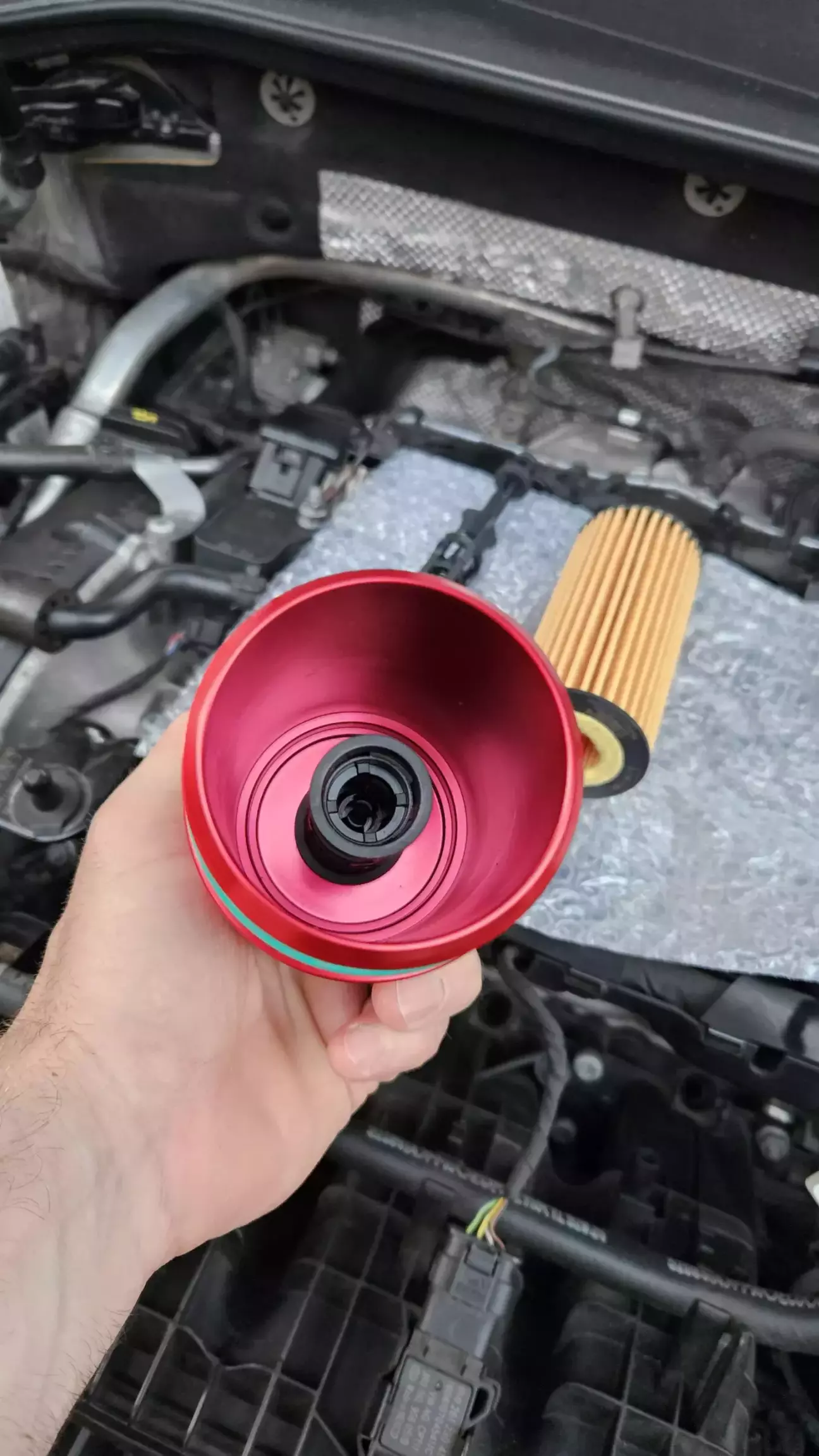 І вирішив поставити тюнячий алюмінівий корпус масляного фільтру, замовив червоного кольору, це ж gti під капотом червоний не помішає😬. Тіпу із-за цього корпусу температура оливи трохи менша, от і провіремо...