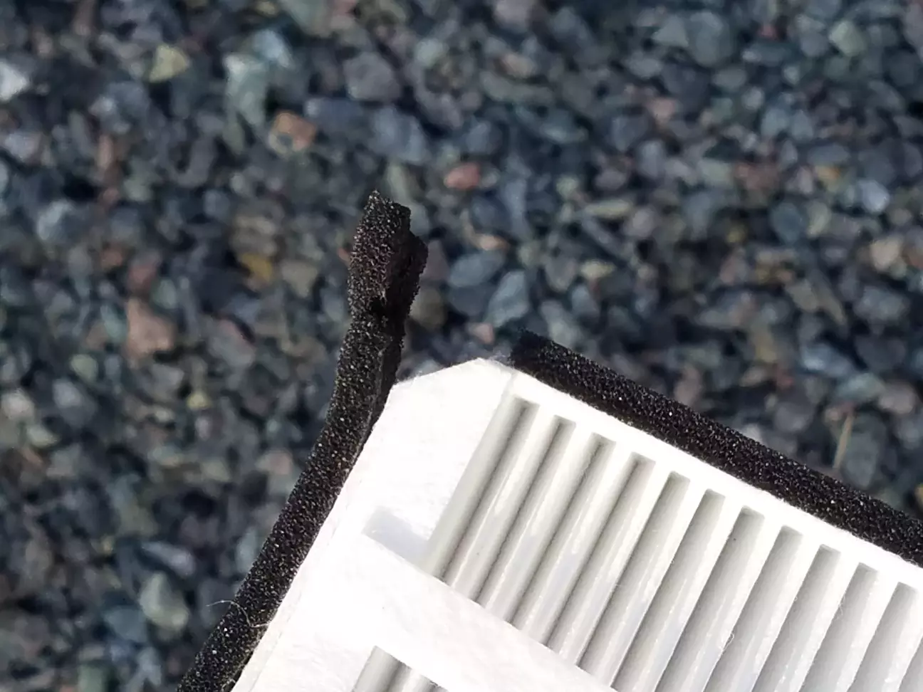 Тепер про фільтр салону.В самому місці де він встановлюється кути закругленні,а на фільтрі вони гострі.Я підрізаю поролон,кут відрізаю і промазую його герметиком,поролон приклеюю.Так роблю з усіма кутами.Після цієї доробки він щільніше встає на місце.