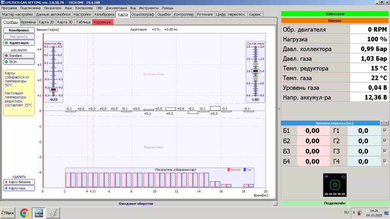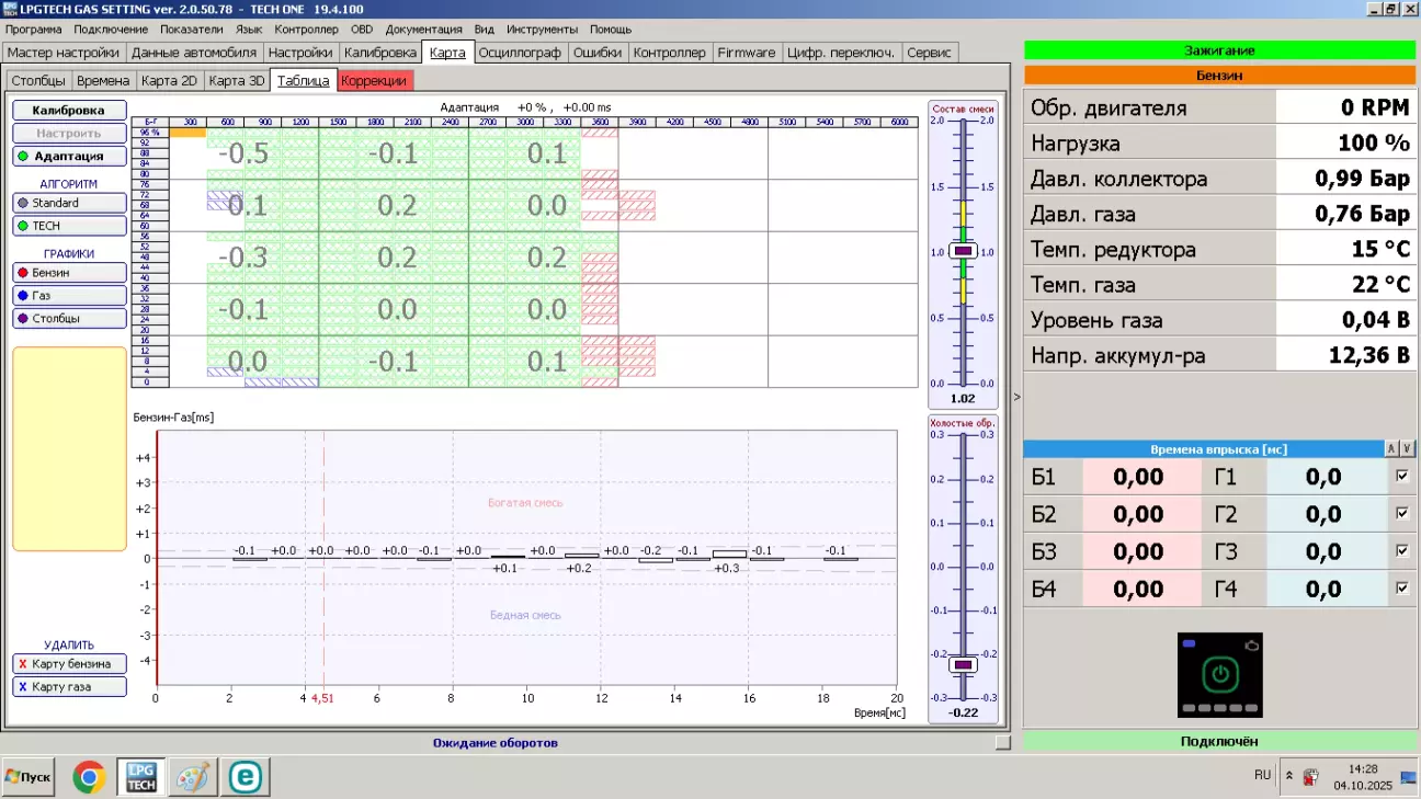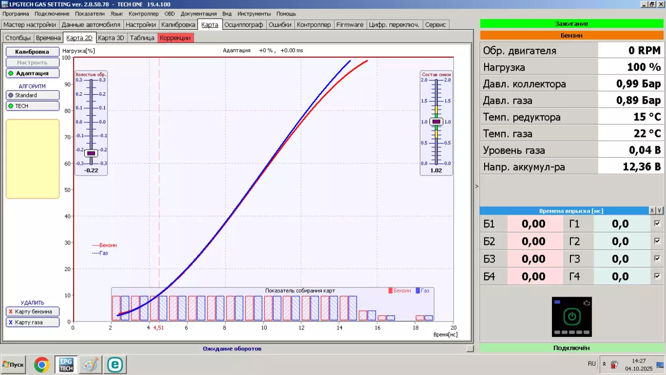 Блок керування встановленний від LPGTECH TECH ONE.Спочатку я його налаштовував у ручному режимі,але все щось було не так,график постійно кудись вилазив.Вирішив спробувати у режимі TECH адаптація.Для моєї машини він добре підійшов.