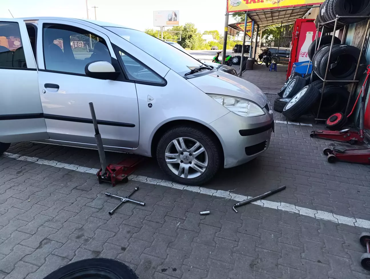 Якось сумно було жужику їздити на сталевих штампованих дисках вкритих ковпаками. Та й мені з жінкою кортілося додати чогось свіженького. Зійшлися на пошуках легкосплавних дисків. На OLX самі сочнюші коштують нормально так, та й ще доставка, і як ви розумієте купа інших нюансів, по типу стану та предоплат. Нарватися на недоброзичних людей дуже багато шансів. Тому вирішили покататися по місцю. На розборках дисків з нашими параметрами не знайшлося (4х114.3 DIA67.1 R15), а от на одному шиномонтажу, за досить невеликий бюджет на очі потрапили диски з Lancerа 9. Для примірки накинули ще не роззуте колесо