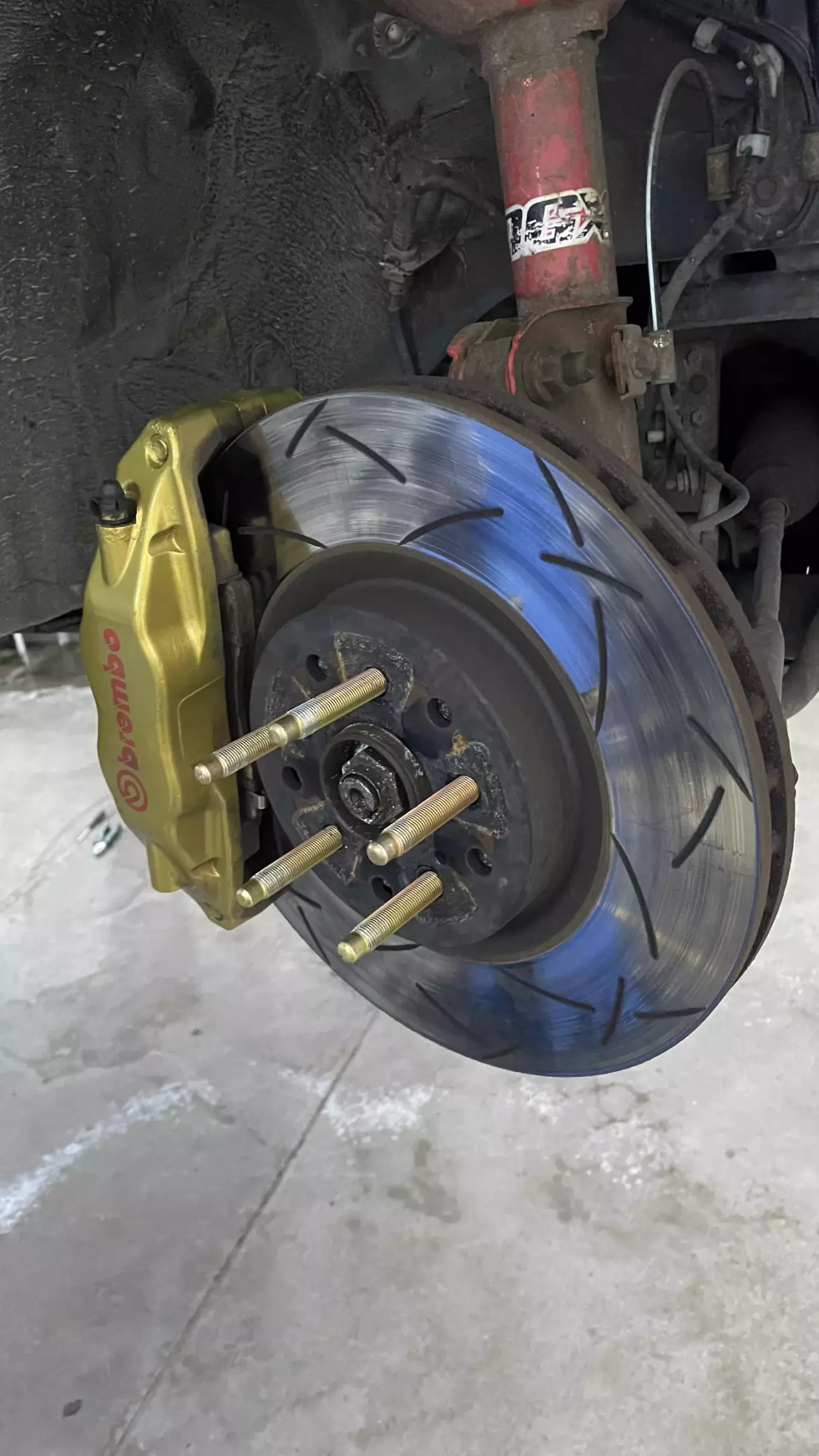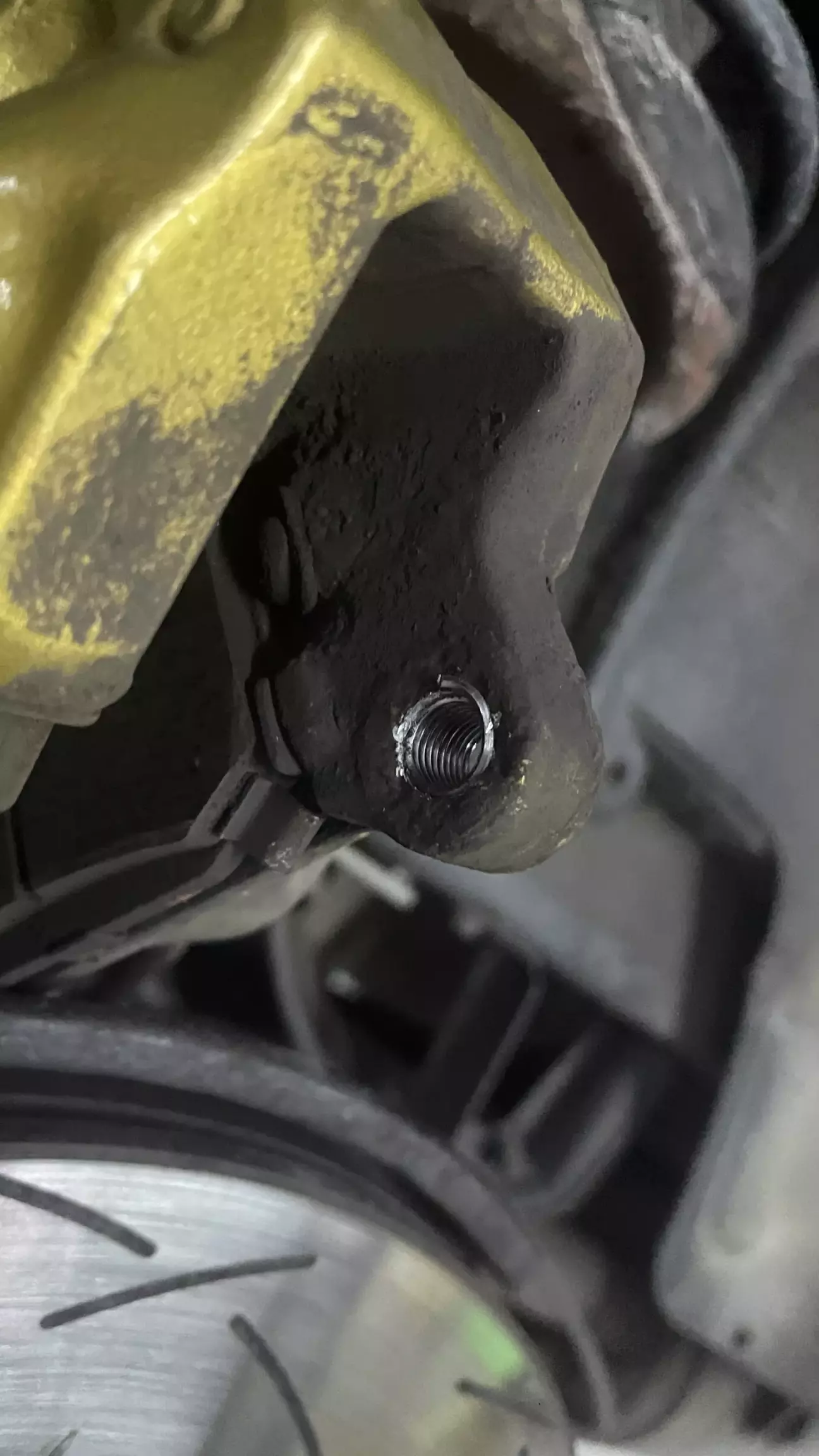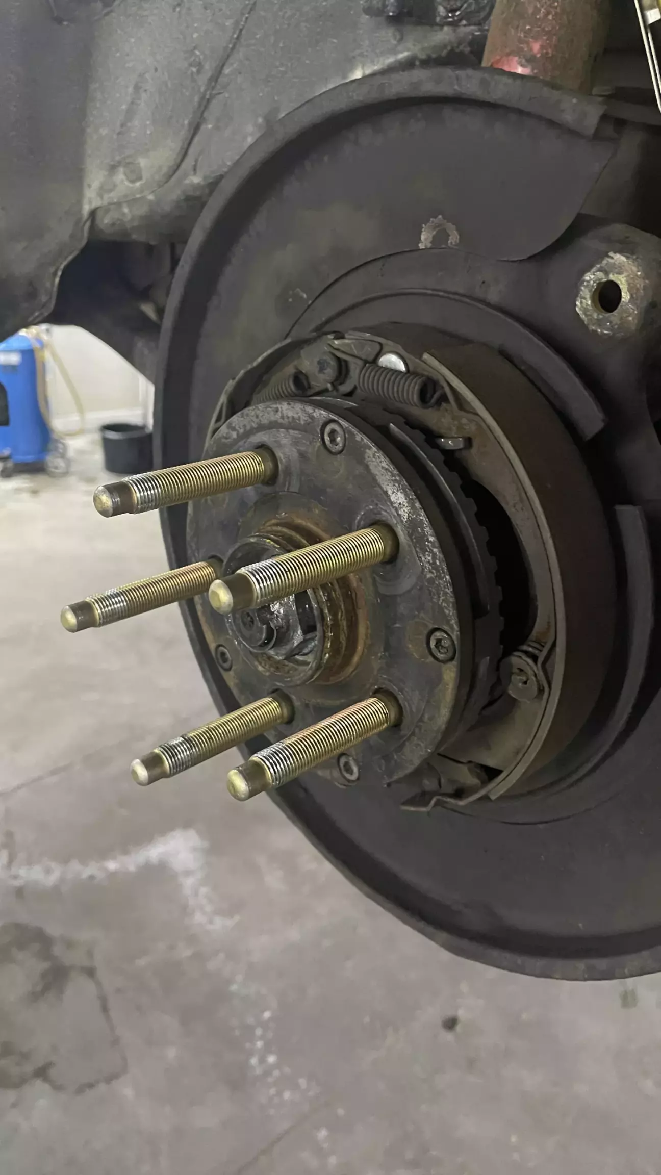 Доля заміни шпильок треба повністю знімати всю гальмівну систему і механізм стояночного гальма. Так як мої супорти brembo gold зроблені з алюмінія і мають болячку прикіпання болтів кріплення їх до кулака і викручування цих болтів з супорта разом з різьбою - під час зняття одна різьба на задньому супорті таки померла. Відремонтували різьбу шляхом ремонтної вставки.