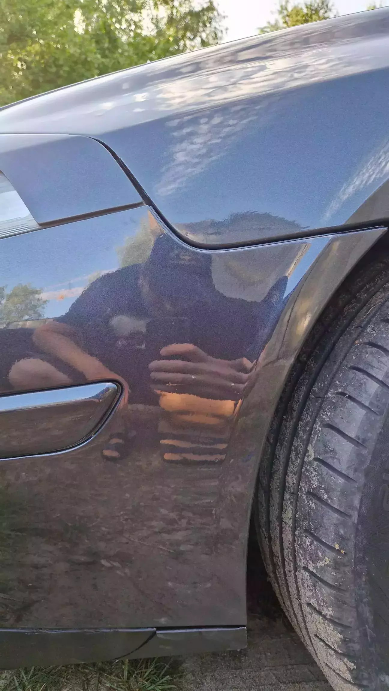 На цей раз з відтінком колорист не вгадав, завжди брав в нього і було один в один, тут з 100% впевненістю навіть викраску не робив, впевнений що буде попадання, покрасив, поставив на машину і офігів, під кутом 90° ще терпимо, якщо дивитись під гострішим кутом то пздц...ну крч що з цього вийшло див