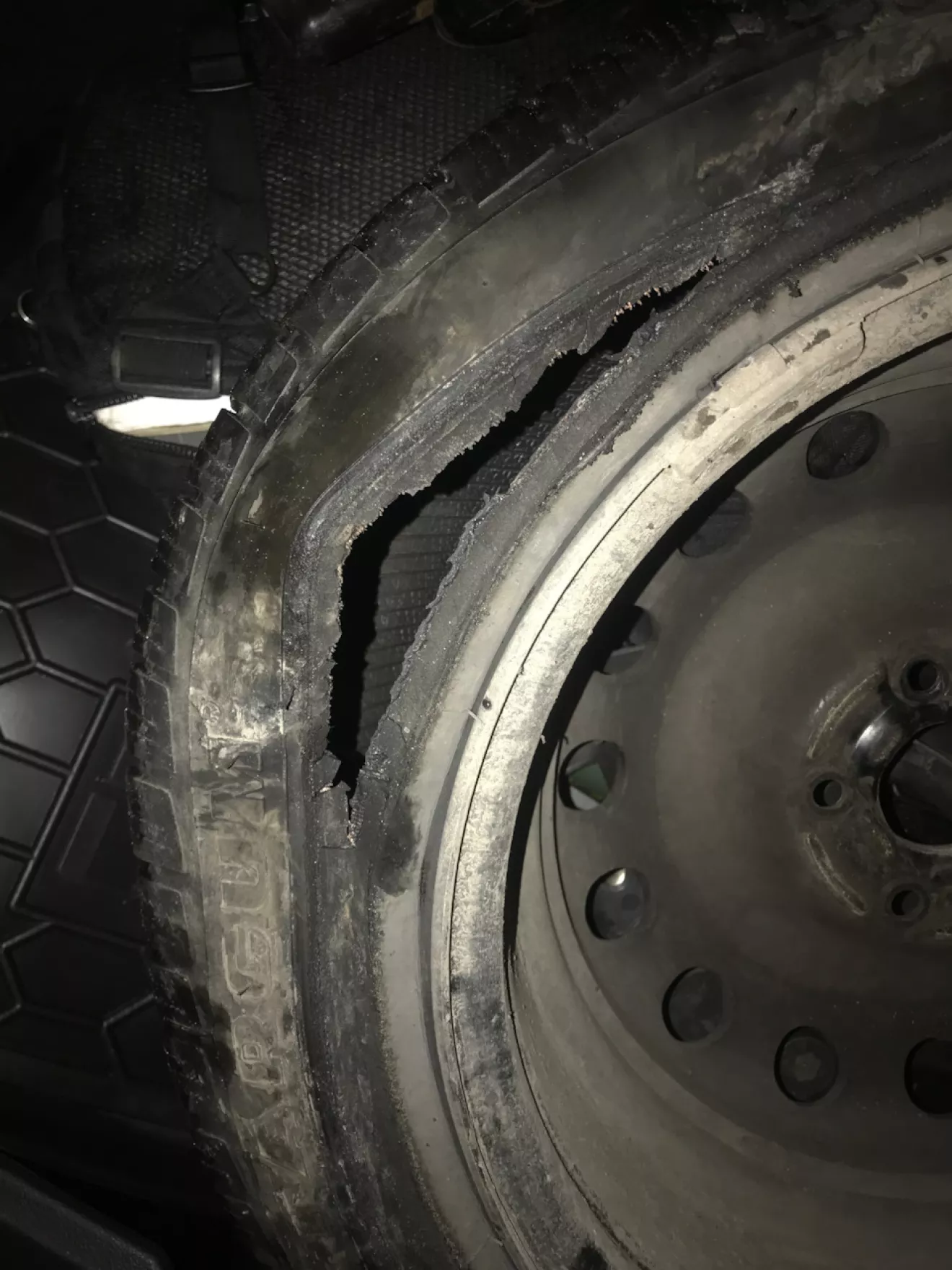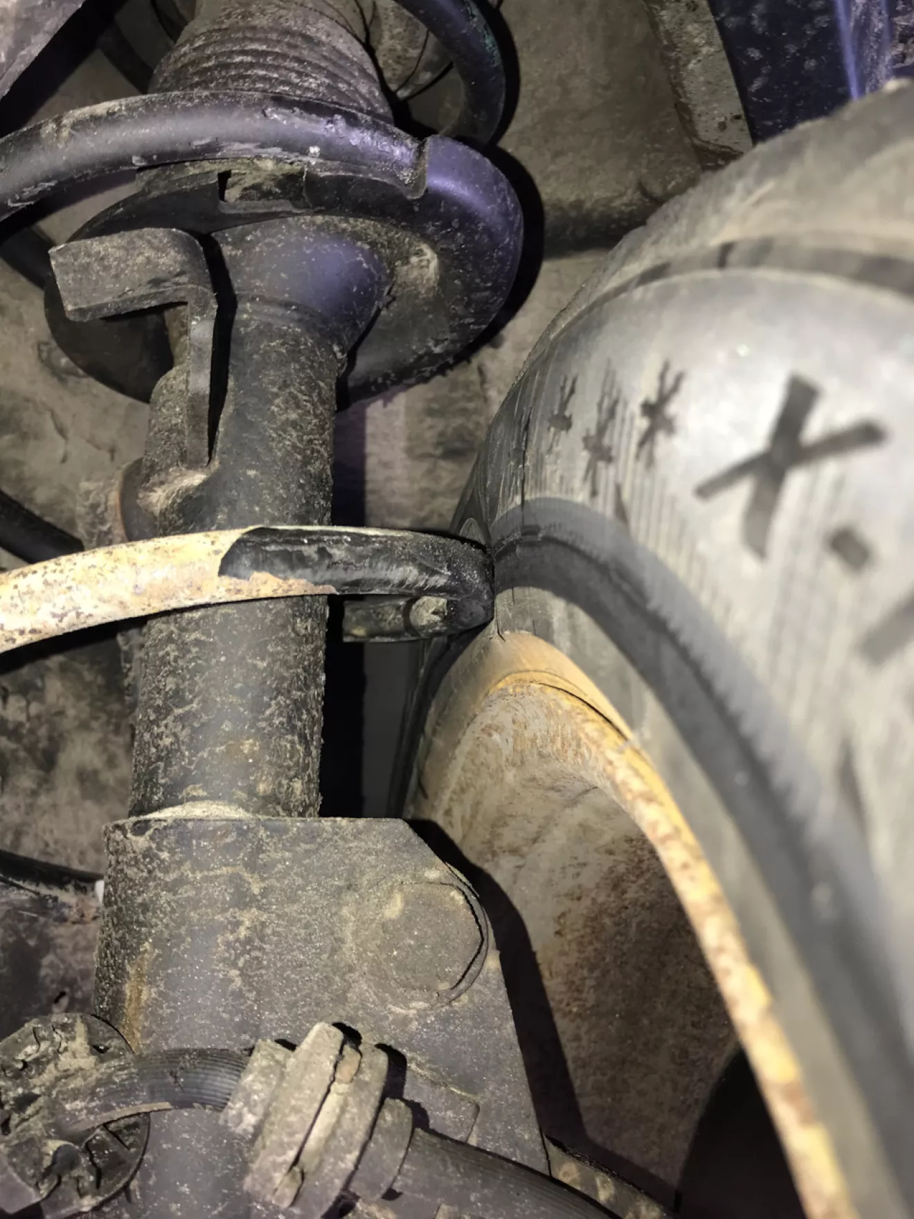 Ребята вечер добрый, случилась такая история .Выезжаю я вечером с парковки и минуты через две слышу как будто защелкало в после я услышал запах резины, но особо не обратил внимания.Через километр движения запах гари только усилился, остановился открыл капот но там запаха вообще нету, обошёл автомобиль и принюхался и обратил внимания что запах идёт с переднего левого колеса .Сам себе думаю доеду уже как нибудь до дому а утром гляну, но в итоге через 10 минут лопнул скат, поднял автомобиль снял колесо, и вижу картину что что-то блин трёт .Вот мучаюсь вопросом что это может быть что так за такой короткий промежуток времени протерло так резину с втутреной стороны.Сегодня посмотрел по утру и точно пружина подперла, теперь вопрос заменить пружинку или стойку комплектом
