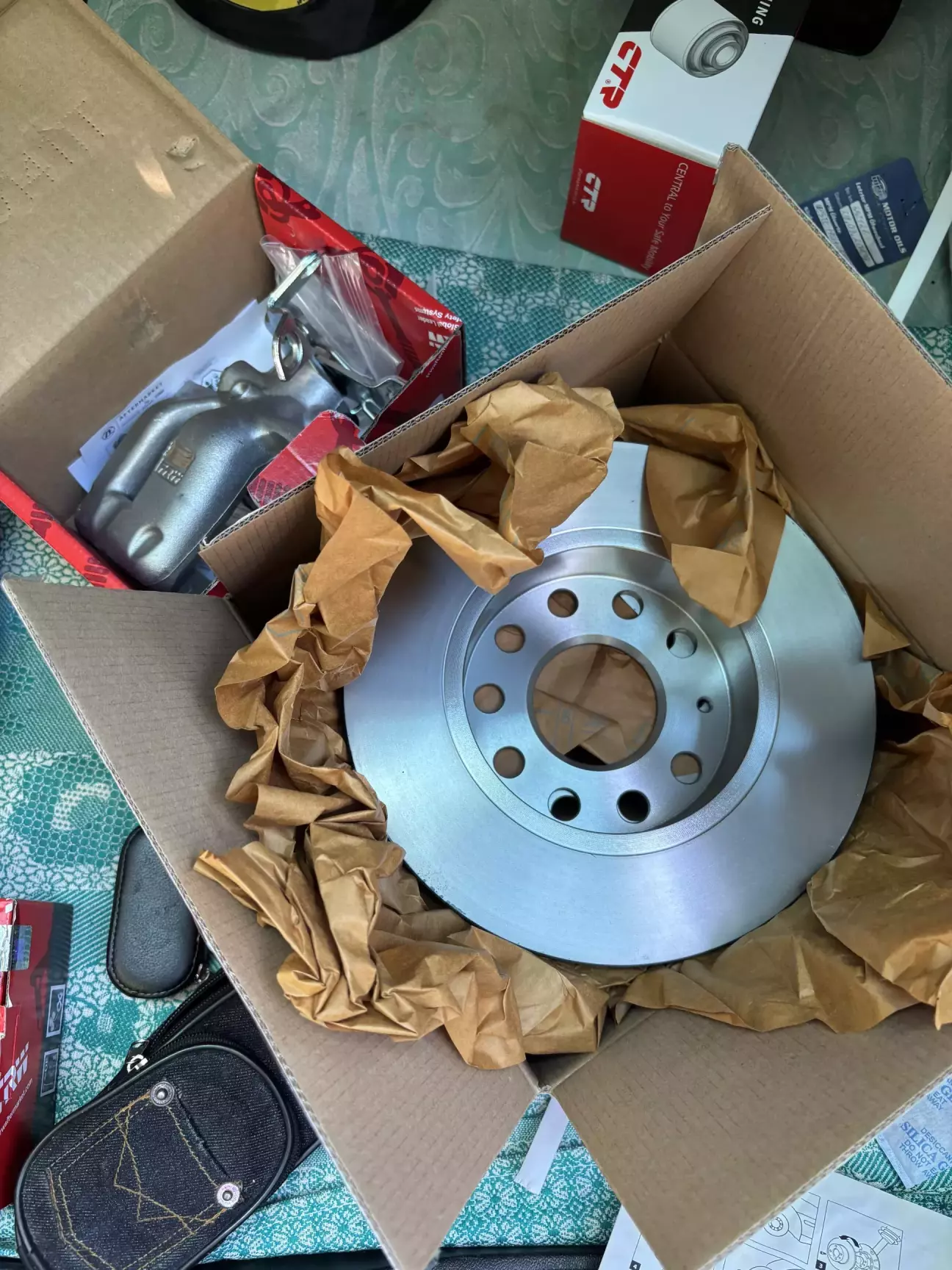 Паралельно надумав міняти і диски з колодками (так як диски вже були дійсно не дуже), планував ще пів року тому ставити Texstar, але ціна виросла і якщо пів року назад було дорого, то стало ще дорожче. Тому вирішив трішки дешевше взяти, TRW, теж не самі погані гальма як ніяк. Тому вирішив вже брати все по TRW, диски, колодки і супорт TRW, і гальмівну рідину також замінити, взяв ATE SL6