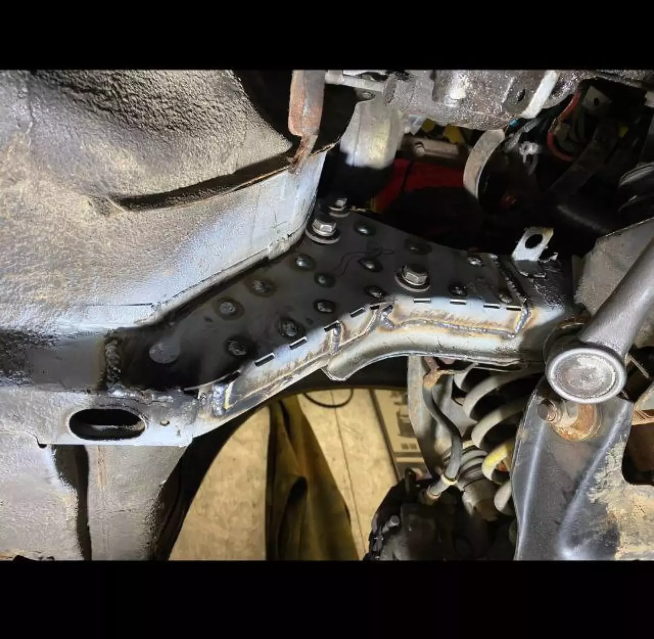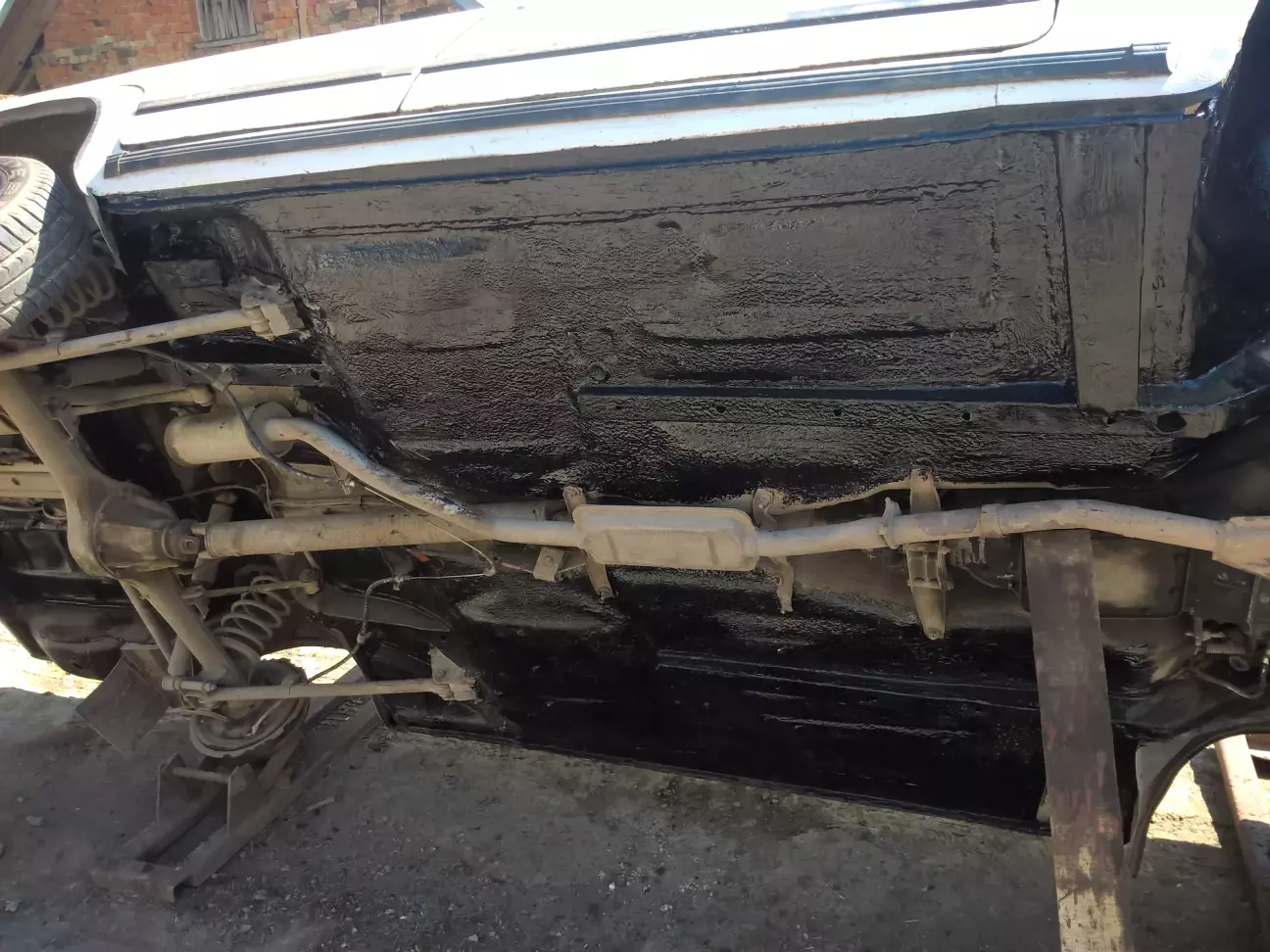 Задно були зрізані старі піддомкратники, замість них усилені місця на порогах під новий домкрат.