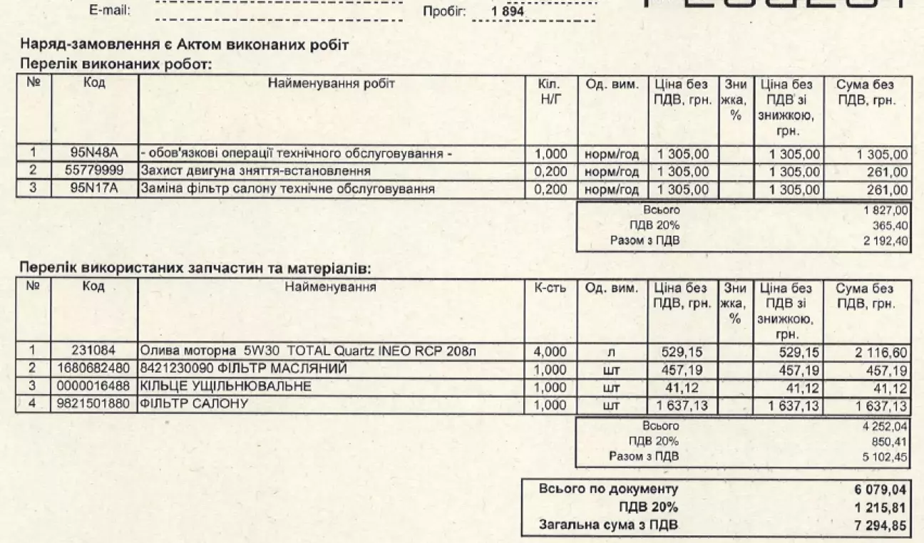 Власне на скріні деталі щодо вартості і переліку робіт та матеріалів.