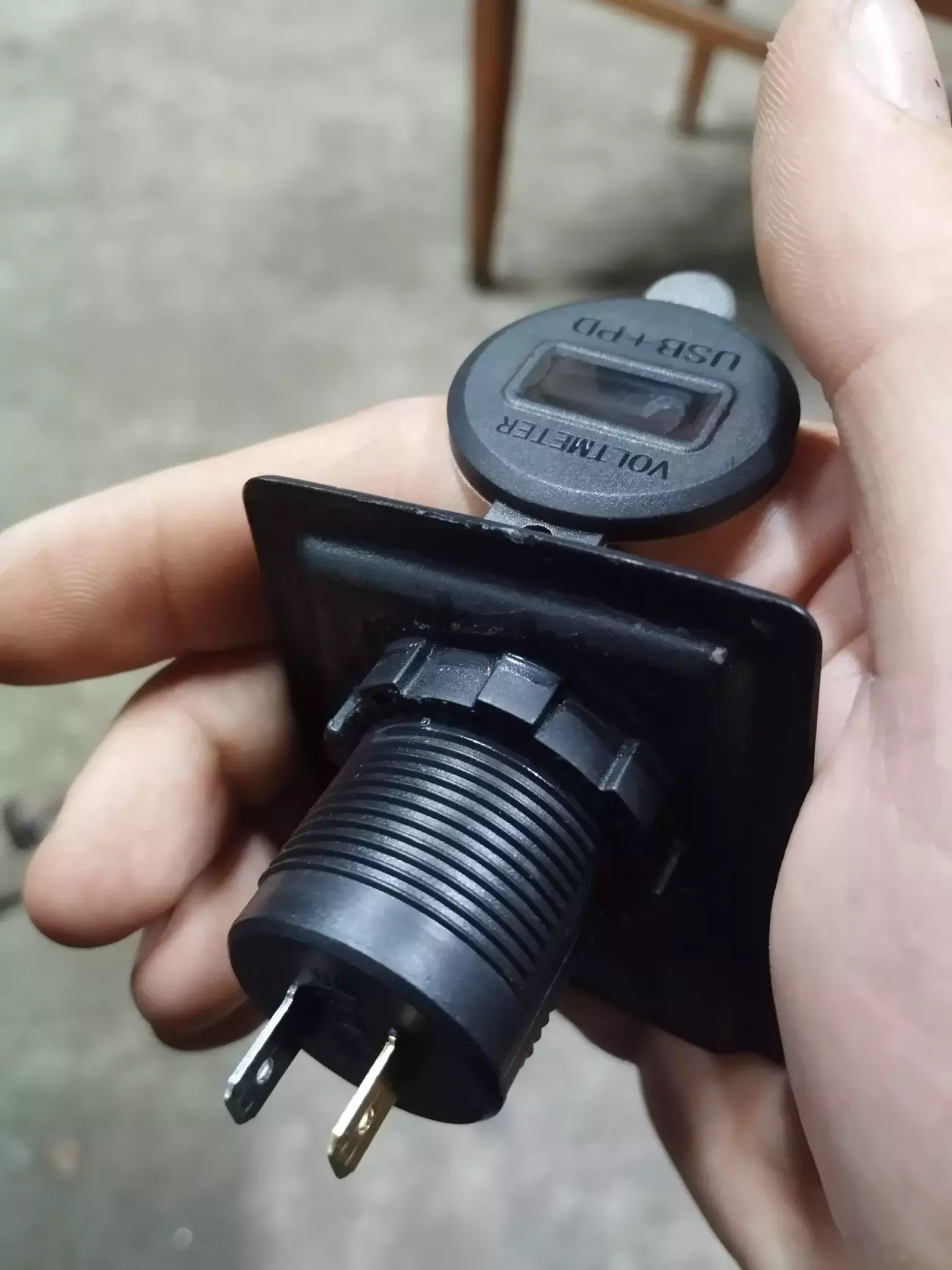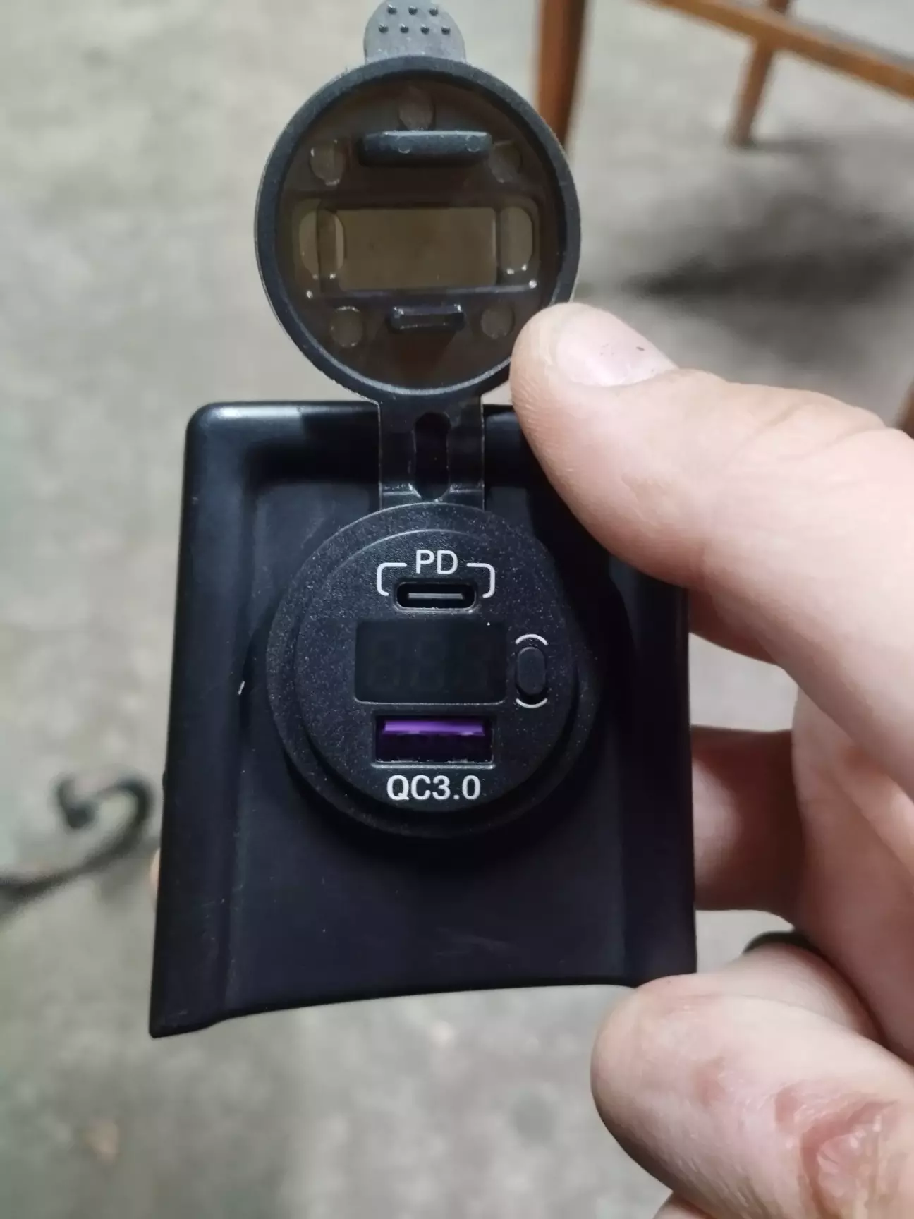 Їх є трохи різновидів, вплані роз'ємів, та за наявністю вольтметра, який по-суті іноді в авто все ж корисний. Тому вибрав конфігурацію з гніздом USB, Type-C та вольтметром (також є з кнопкою включення самого пристрою та без), я взяв з кнопкою, щоб за потреби вольтметр не саджав акб коли авто довго стоїть, і просто щоб ця штука була неактивна коли мені не потрібна. Знімаємо підлокотник з авто, та витягуємо прикурювач, у мене проводів взагалі не було, тому я взяв "+" і "-" від переднього, третій провід на підсвідку тут не потрібен.