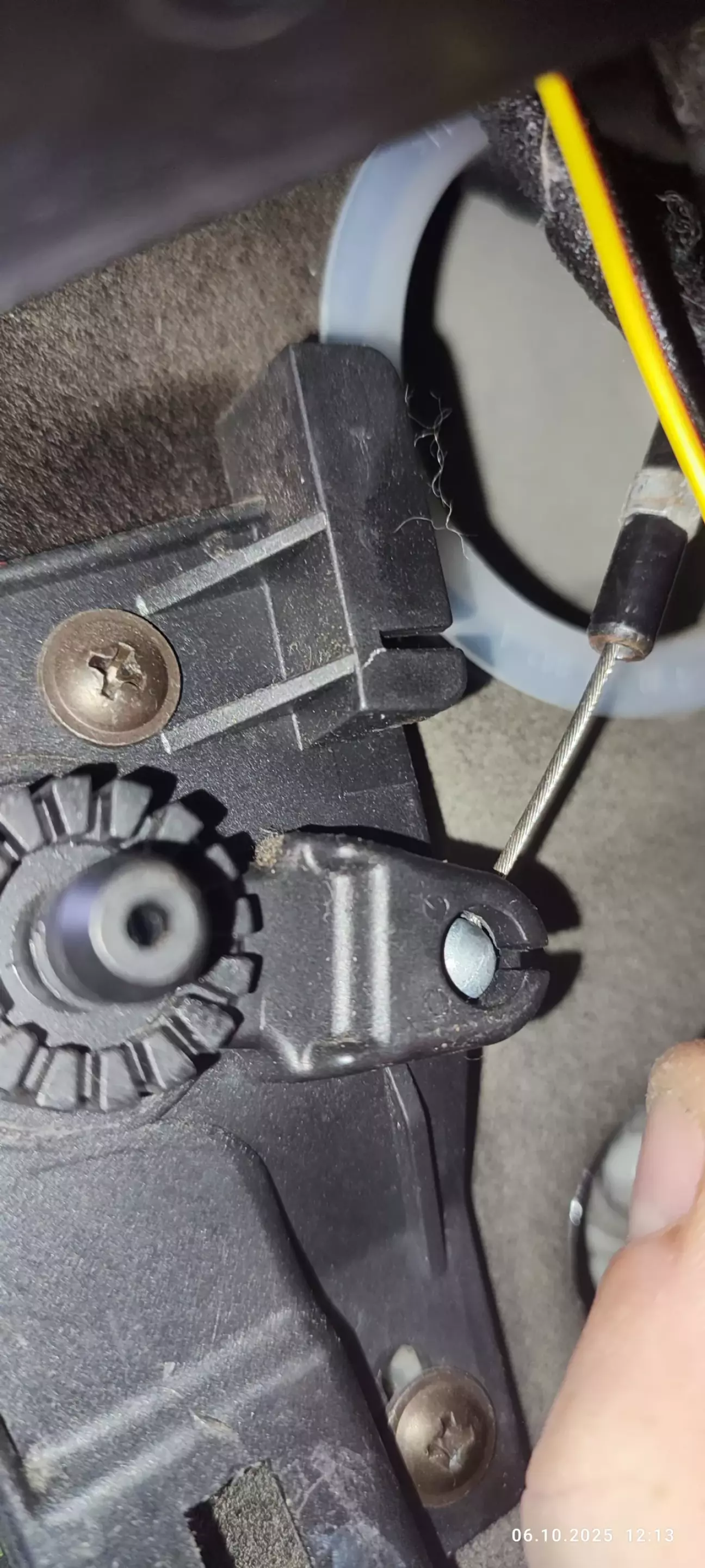 Далі знімаю трос з замка - там треба спочатку зняти кульку, а потім зняти трос з фіксатора, сидить дуже туго, заюзав пасатижі для цього