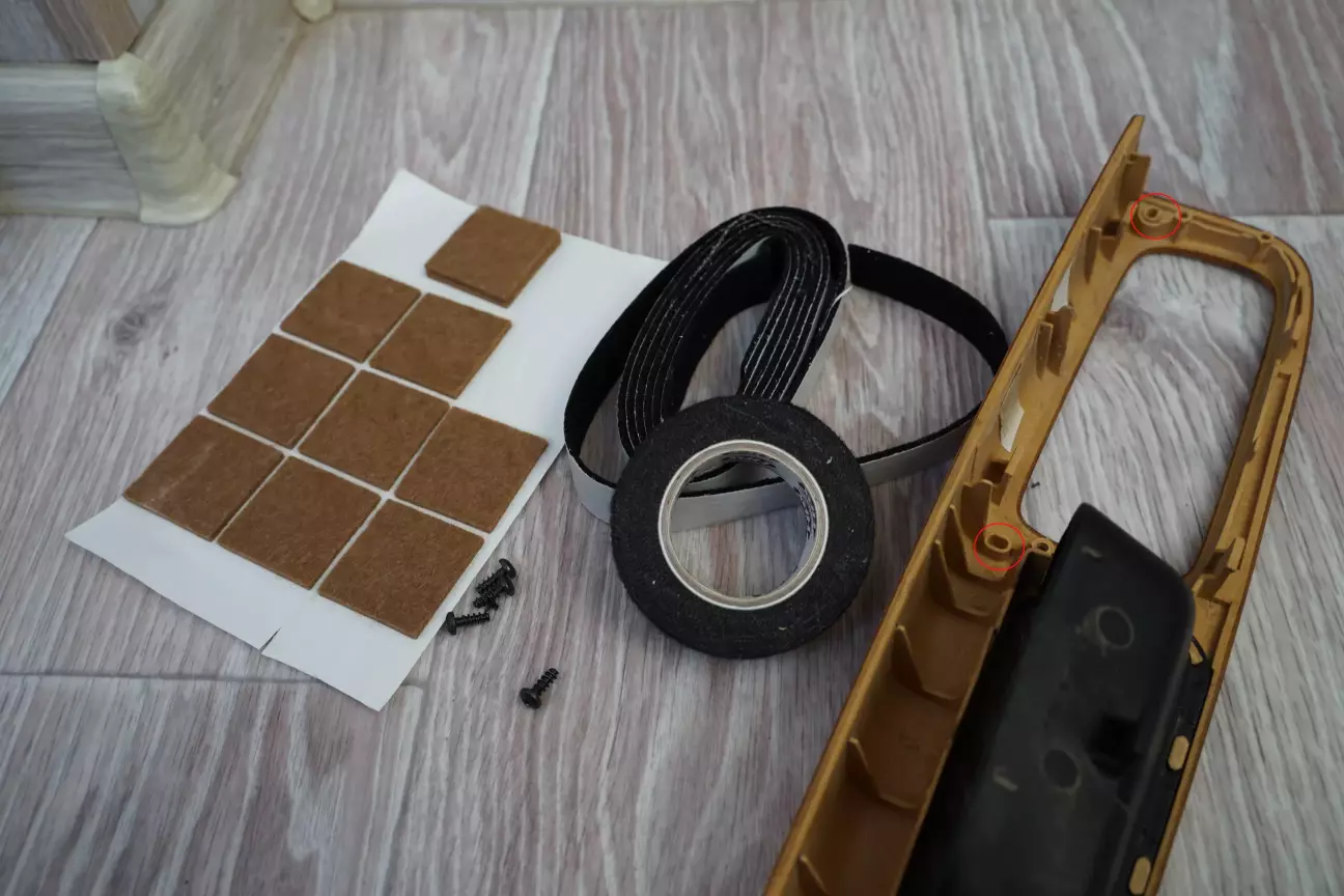 ручки проклеїв антісрипом, в місцях де позначено зробив маленькі прокладки з антіскрипу, власне на тих стиках ручки більше всього хрустять.