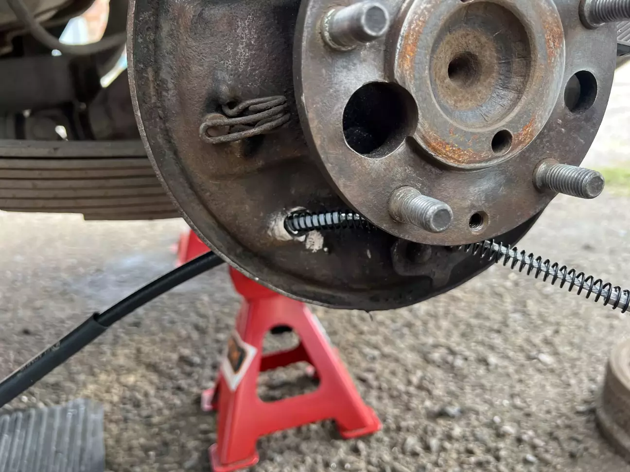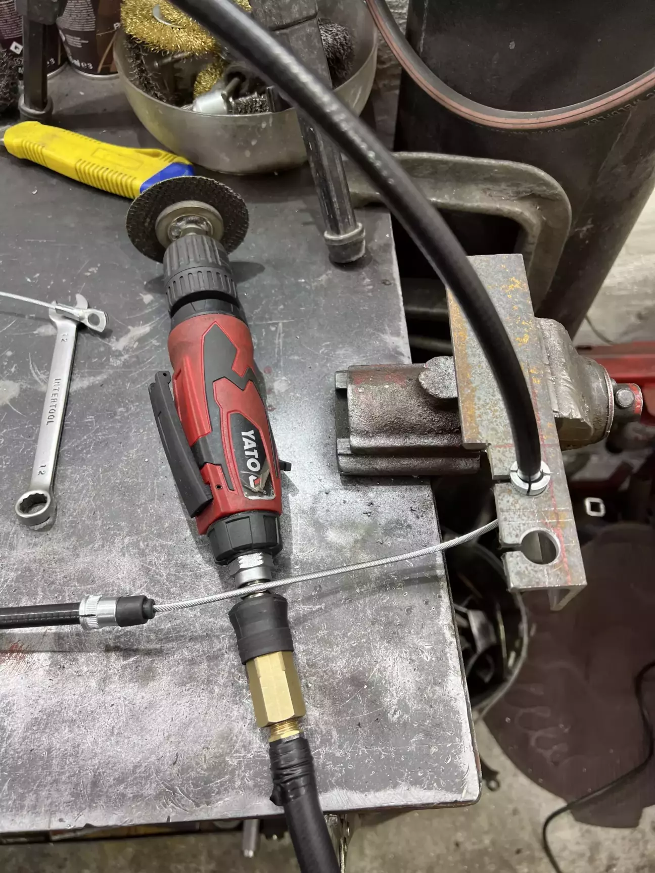 Шарошимо отвір від важіль. Не орінтуйтесь на фото, троси можуть бути різні по довжині + вони потім потягнуться. Робіть в притул + 10 мм в перед. Інакше розір втече і доведеться підкладати гайки.