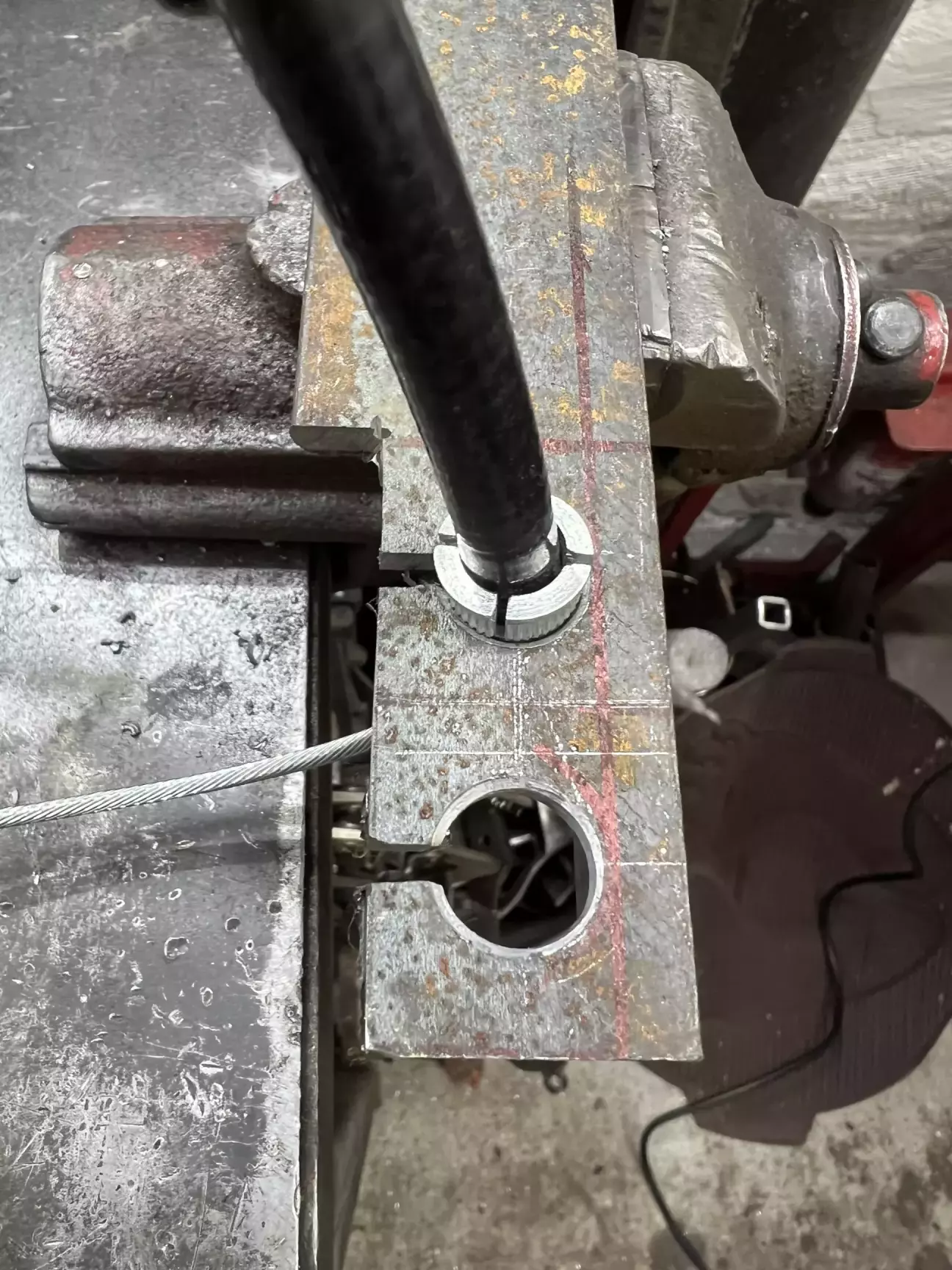 Розшарошуємо отвір. Наступне фото не завантажується. Там треба просверлити два отвори для кріпленя отворів тросів, та прикрутити бовтиками м6.