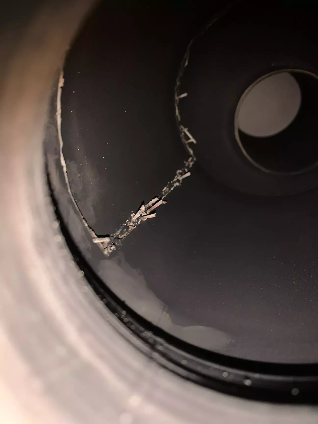 Знімаємо вихлоп і все стає ще цікавішим, перша банка вирізана, друга розрізалась але по факту залишили другу. Різали якісь дикобрази вирізавши лючок і вибивши каталізатор замість того щоб обрізати по колу, результатом такого рукожопства деформована банка при сварці та насраний шов в середині.