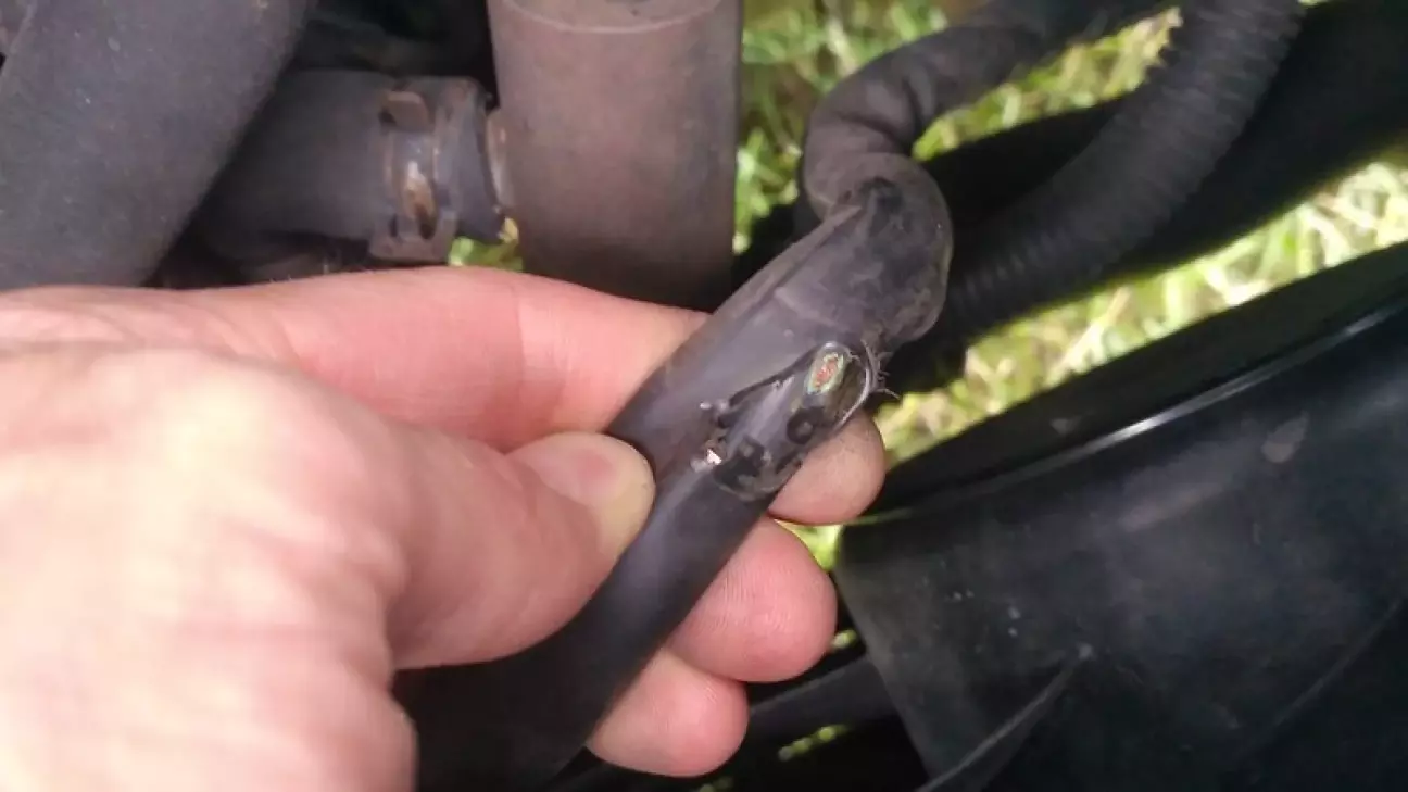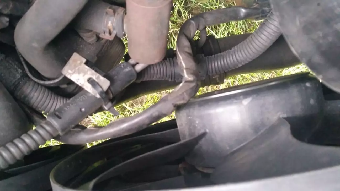 Вже по поверненню додому на природі оглядав підкапотку і помітив, що джгут проводів знаходився біля вентилятора, перевіривши який, виявився обрив дроту (перетерло вентилятором). Скрутивши через клемну колодку, перевірив на запуск і заробив. Радість від вирішення проблеми, і сум, що не побачив цього у відпустці, і довелося зазнавати незручностей.