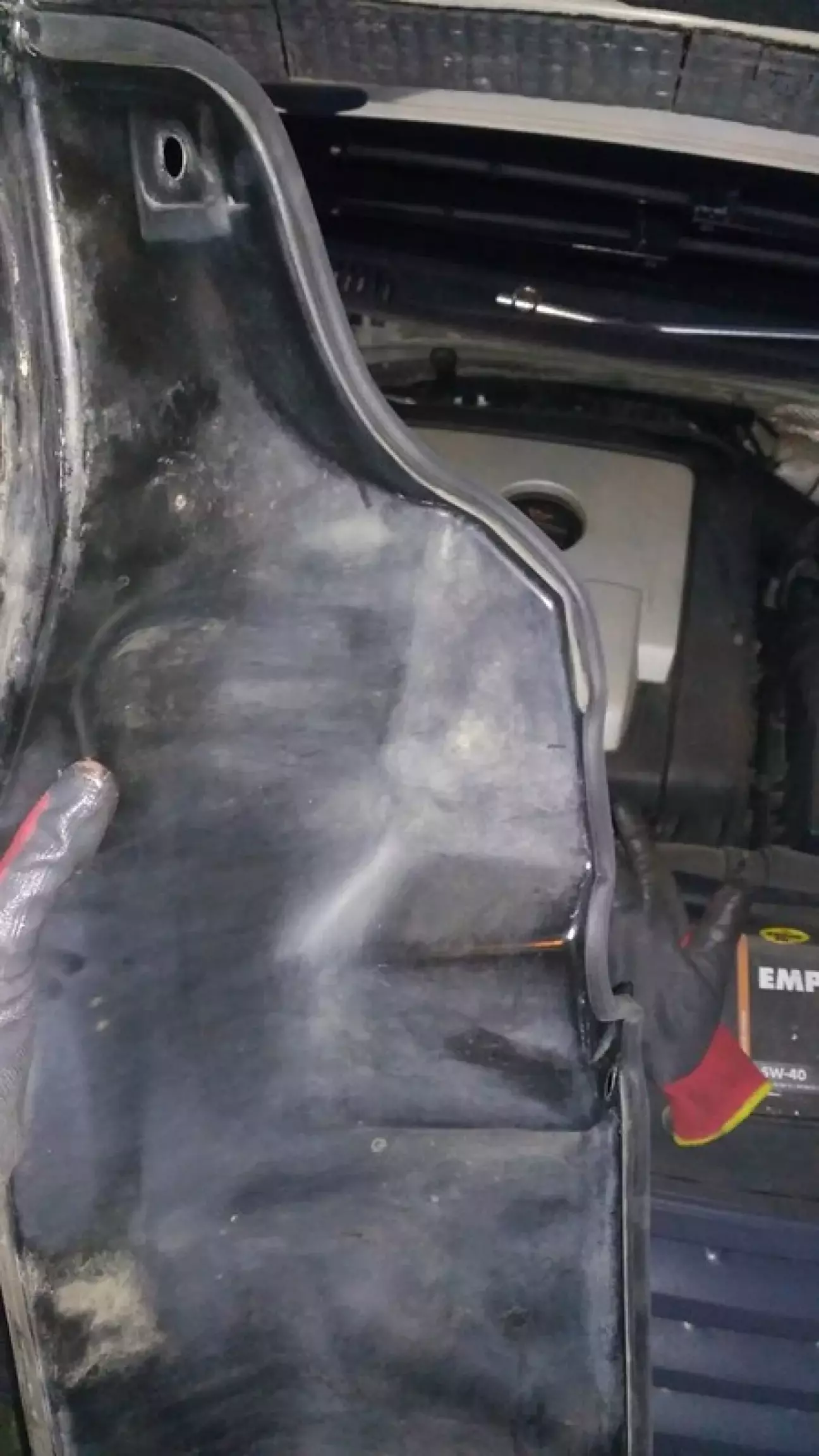 Проклеїв додатковим ущільнювачем щиток під капотом, сподіваючись уникнути попадання води на блок ESP, але виявилося, що вода крім цього місця ще потрапляє з-під пробки, яка знаходиться за щитком, треба буде чимось загерметизувати її.