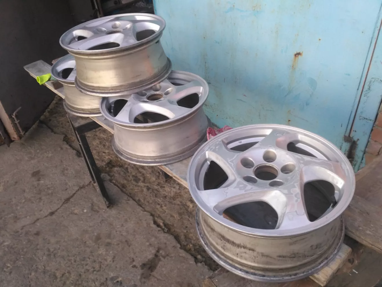 Зимняя резина досталась с машиной, и я озадачился с выбором дисков, по сколько хотелось иметь два комплекта, мне так удобнее, я так привык, было уже почти купил штампы с ориджинал колпаками, и думаю посмотрю ещё на барахолке, и о чудо, нужные мне диски, в моем же городе, по цене штамповок (чуть дороже)