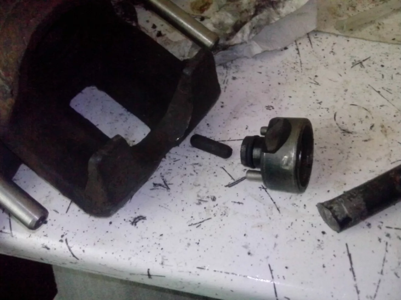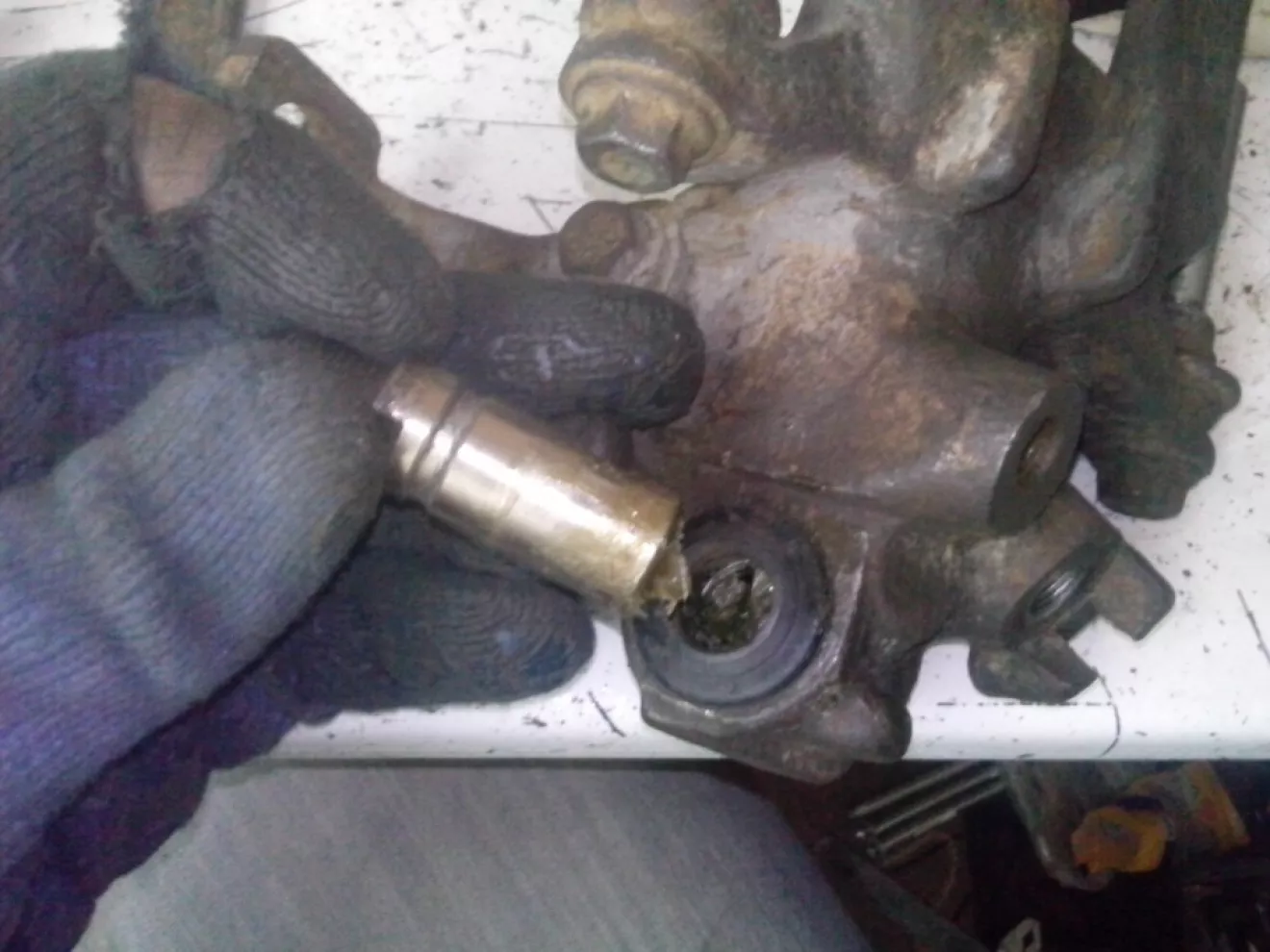 Разборка суппорта выдалась сложноватой, внутренний поршень или как там мать его, не вылазил