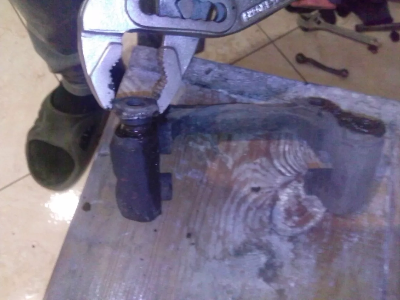 Левый суппорт оказался тоже с подарком, заклинившие-погнутые направляки, с которых снять суппорт было так же проблематично, дело без молотка не обошлось, одна напрявляйка как то вылезла, а другая нивкакую.