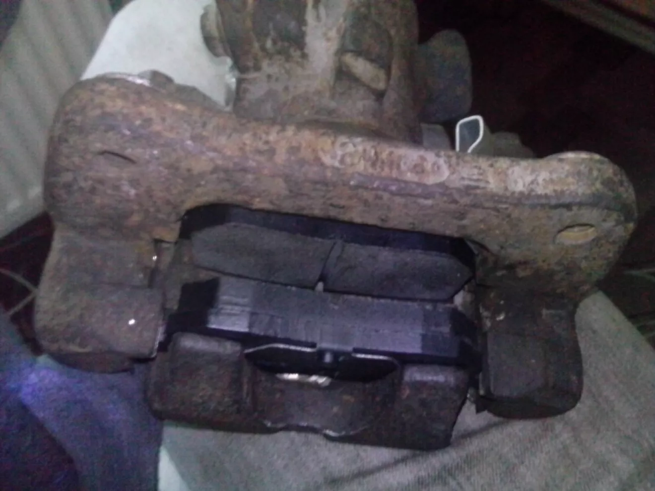 Заклинивший суппорт стал заклинившим из-за кривых направляек, пыльники целые, почему они погнулись, этого уже никто не узнает.