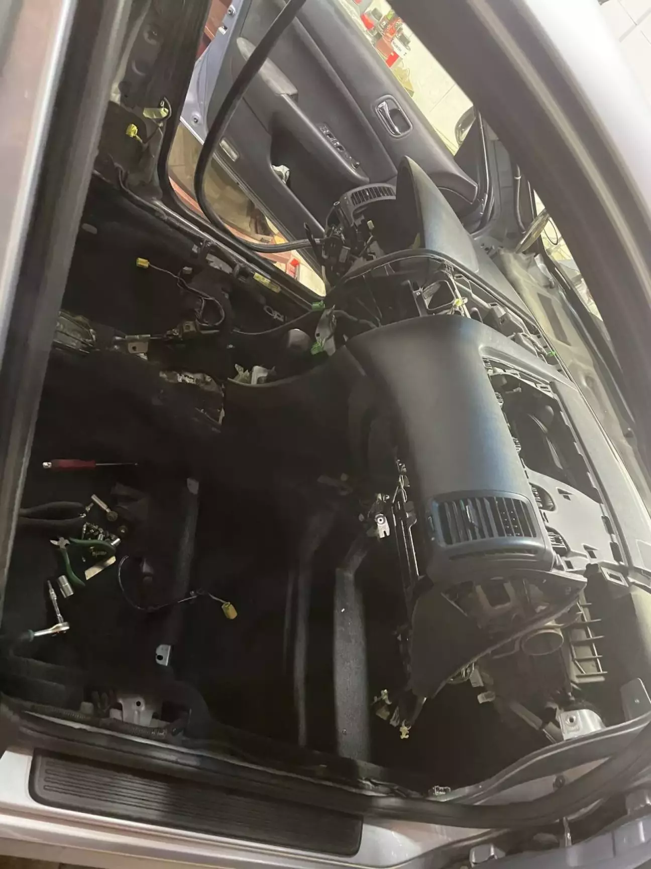і не сильно мені це подобалося, але НАВІ потребувало кроілова проводки, тому спочатку все закуплялося, проводка, ГУ, кронштейни кріплення ( на доресті ії просто немає на металовему каркасі торпеди але без проблем туди монтуються) , динаміки, пищалки, ДВД привід, диск окремо записували з картами України від 8Аккорду, Складні дзеркала з кнопки (не було в мене такоі функціі з заводу) Комбінований салон з підогрівами, проводка всієі машини з комплектаціі ЕХЕ та що майже максимальна, мультруль, пластикові накладки декоративні( з заводу був звичайний сірий колір) купив спочатку дорест карбон