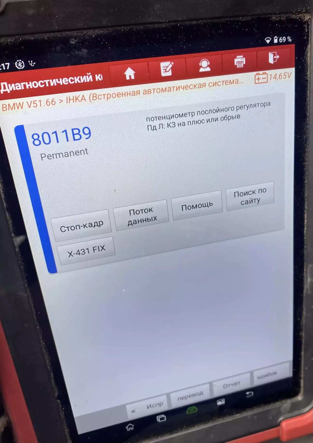 Діагностика показала помилку- код 8011B9 потенціометр пошарового регулятора Пд Л: КЗ на плюс або обрив.
