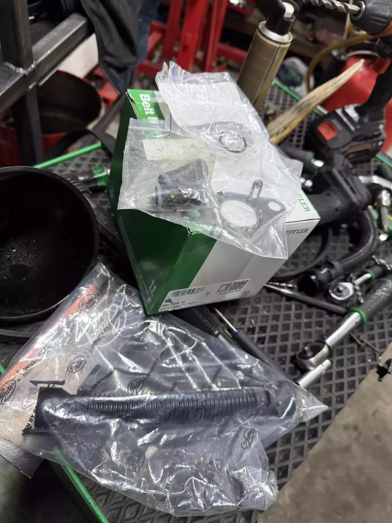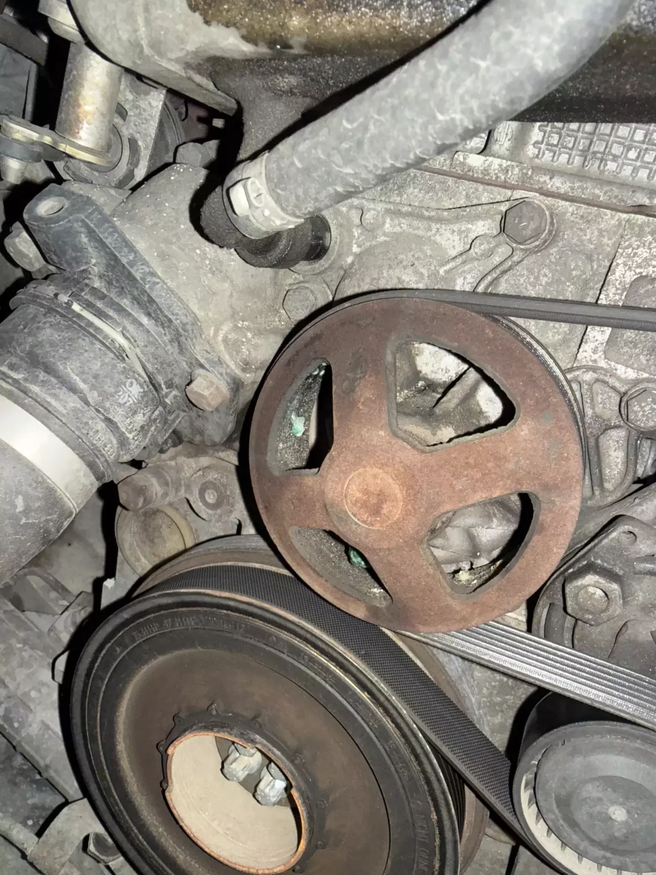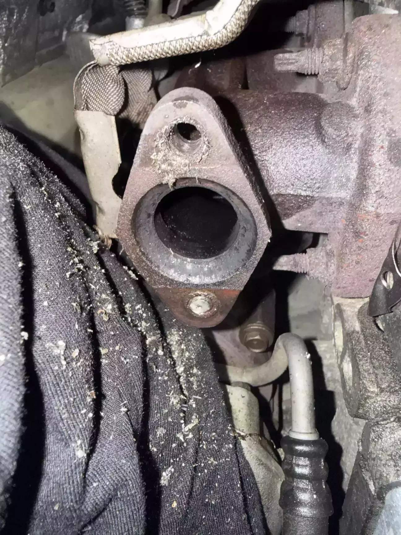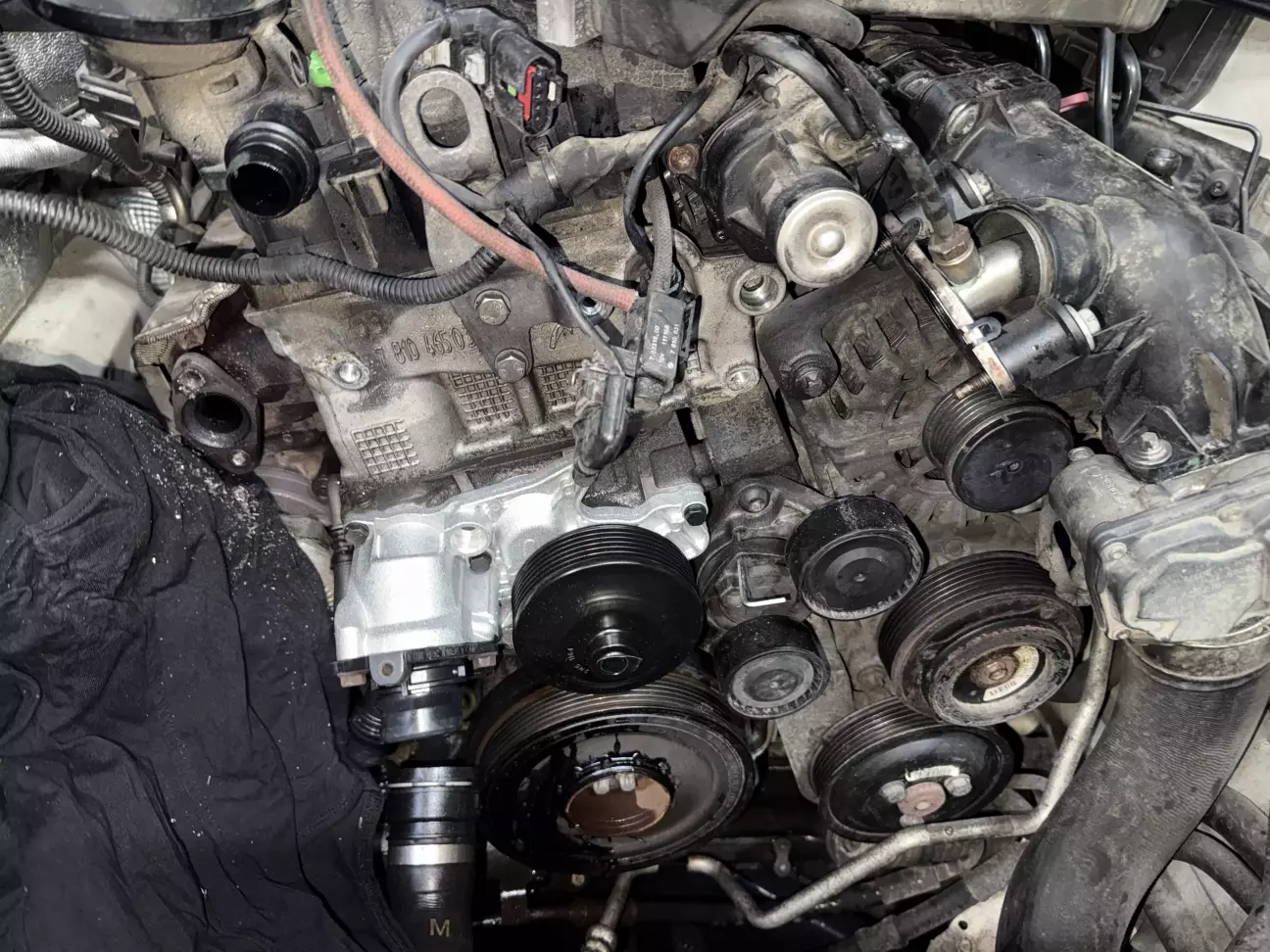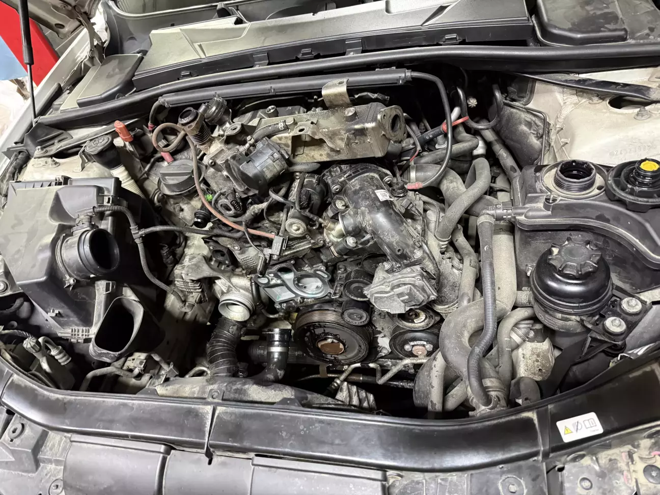 ітак) записався я на СТО банально замінити водяну помпу(так як вона вже починала помаленьку протікати), все ніби ок, зранку загнав авто на ремонт, і почали розбирати. Банально подумаєш щож там ту помпу замінити, але не в моєму випадку) познаходили та замінили ще кілька прокладок які потрібно було замінити, але жвишенька на тортику була в тому що полопали шпильки на випускному колекторі, де зʼєднується з холодильником EGR.