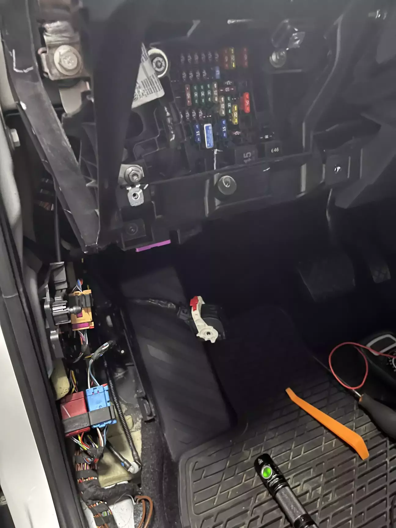 На ліву ПТФ дріт протягую під акумулятором, площадку АКБ разом з коробом повітряного фільтра демонтую . На праву сторону дріт протягую під жабо, по заводському жгуту. Підключаю їх до пінів В5 і В45 розʼєму Т46В блоку ВСМ.
