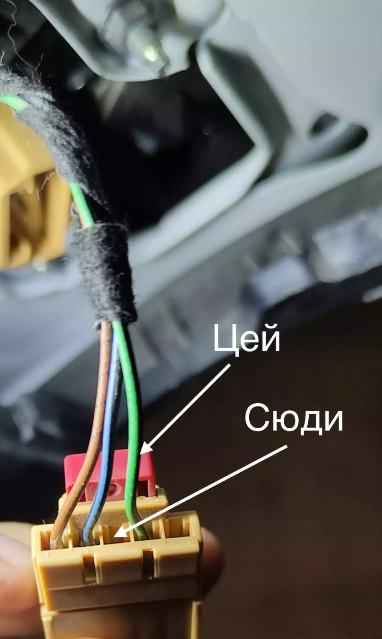 Тут протягувати дроти не потрібно, нам знадобиться один дріт, який ми візьмемо зі штатної проводки заднього ліхтаря, шляхом переміщення дроту з 4 на 3 отвір штатного розʼєму .