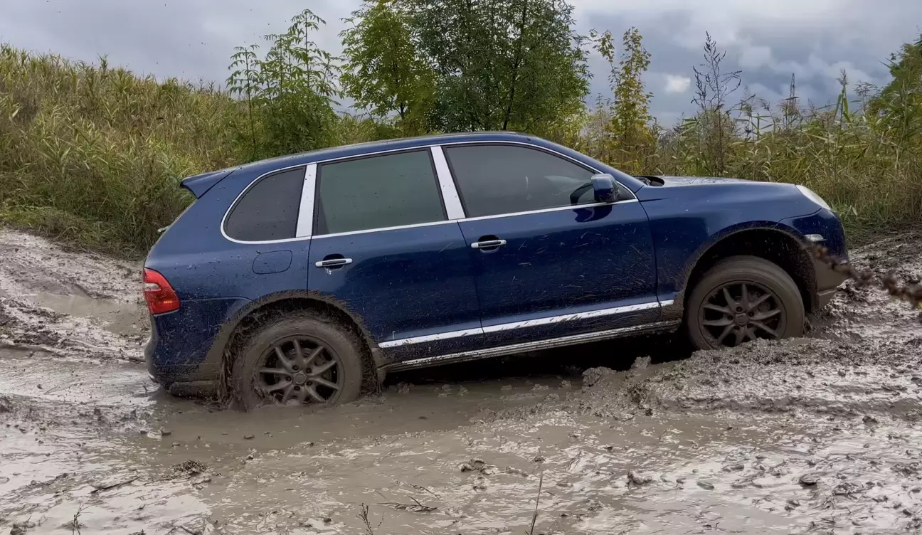 Porsche Cayenne 4.8 атмосферний, мммм, та ти шо! Щоправда, у синього гума трохи не та, та й спортивні обвіси не дуже сприятливо впливають на рівень "психологічної" прохідності, але Івану, здавалось, це взагалі не заважає: