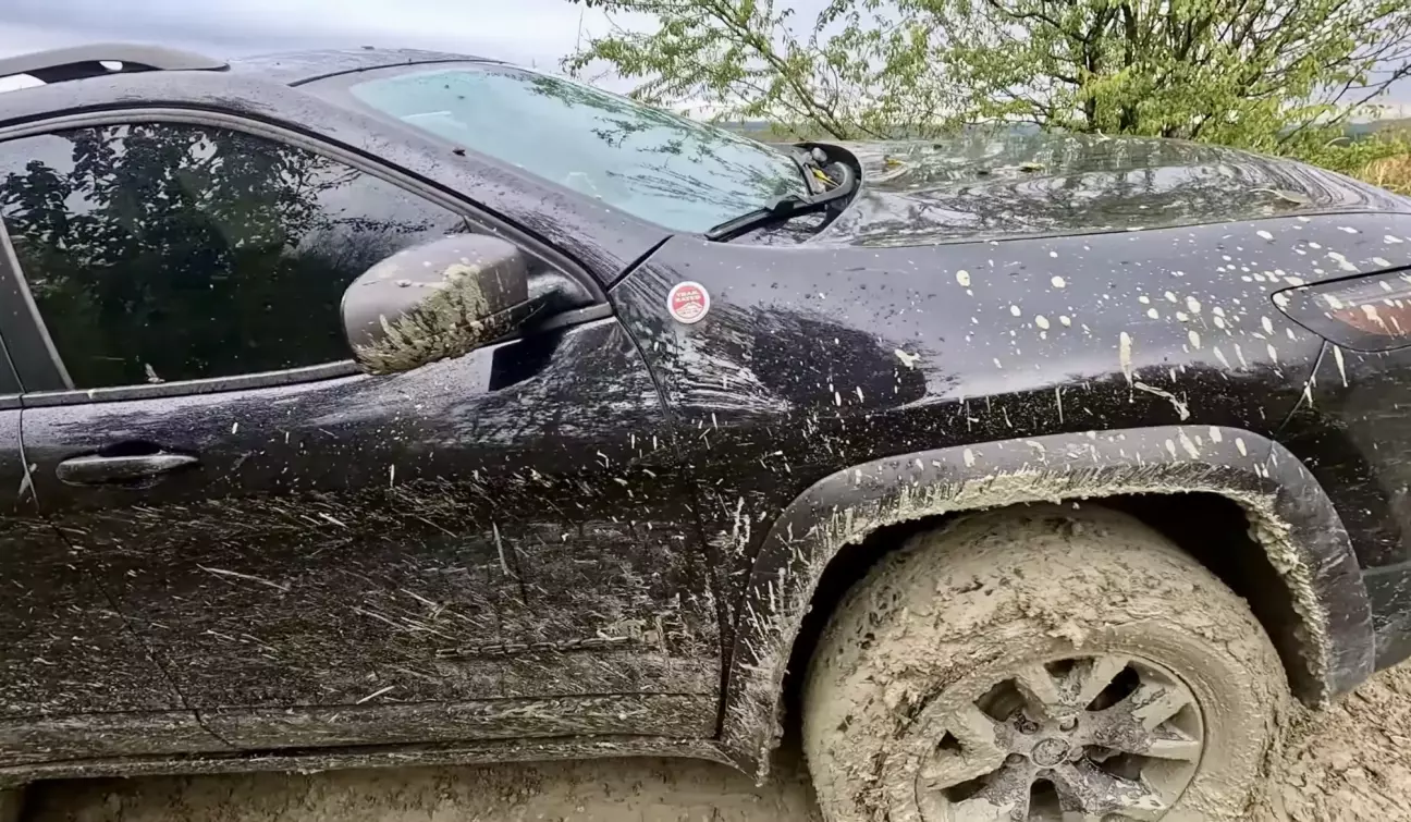 Оце якось так. Я підкачав колеса, глянув на масштаб майбутньої мийки. Машина після покатух виглядає так, ніби її переслідував торнадо з глиною і виграв.