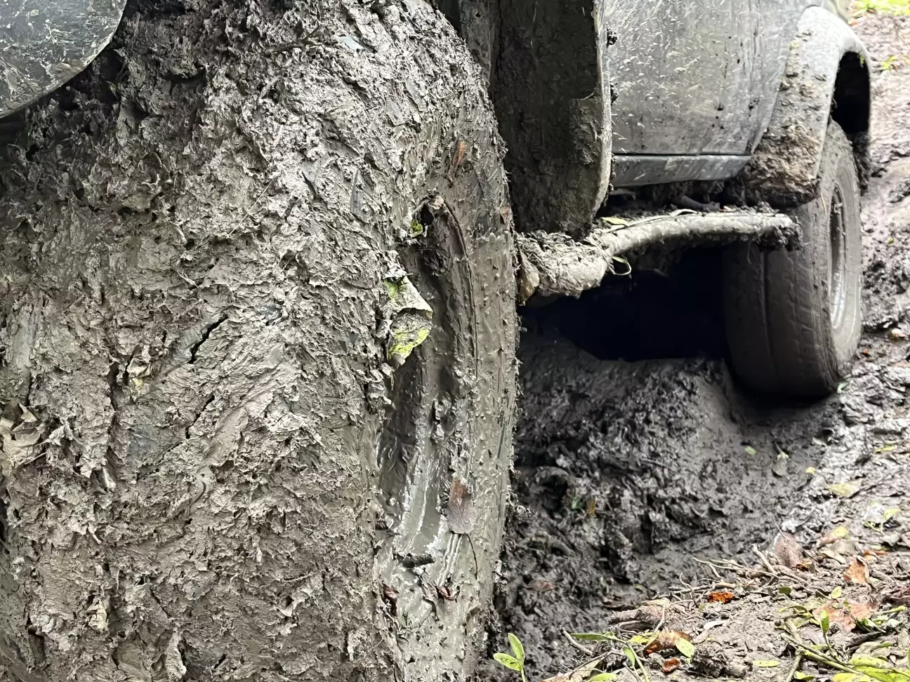 Загалом їде непогано, та ще б пак - я ж стравився до 0.8 атмосфер щоб не "вдарити лицем в болото" 😂 Але все одно гума замилюється моментально, тому десь та й треба брати ходом, бо по іншому - ніяк.
