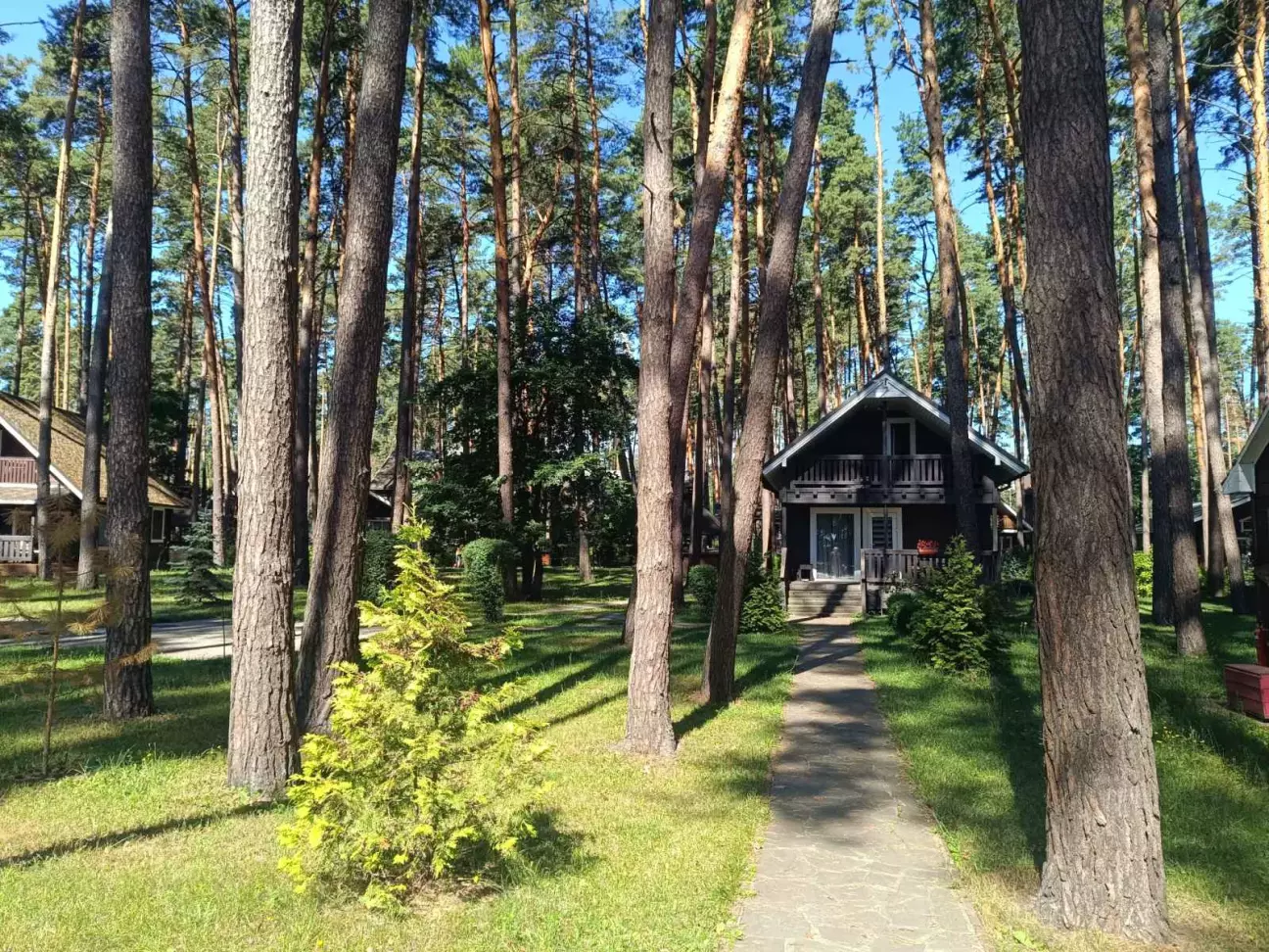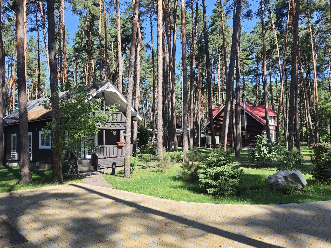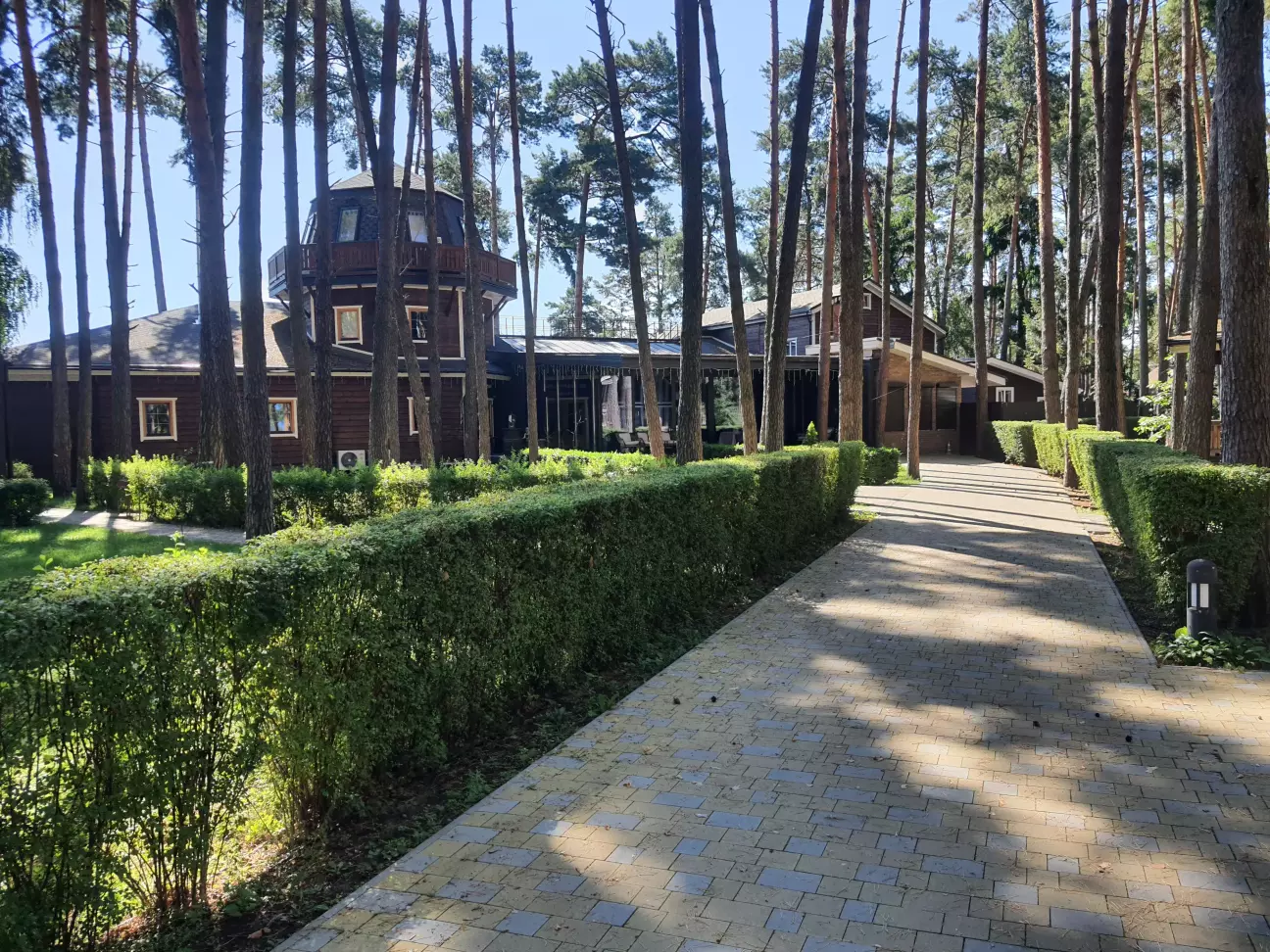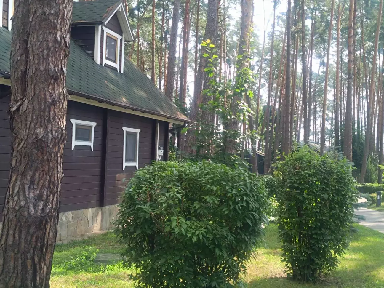 На море поїхали недалеко від дома до дачного містечка Глібівка. 2 дітей і тривала подорож то не дуже, а тут 50 км від Киева. Хто любить соснові ліси буде задоволений. Територія складається з 2 частини: котеджі на сім'ю і котеджі на декілька сімей. Басейнів 5, чисті, є аквапарк(платний окремо). Кухня добра, готують смачно. Вночі тихо. За всім дивляться, побажання клієнтів враховують. Будинок на добу 12500 грн.