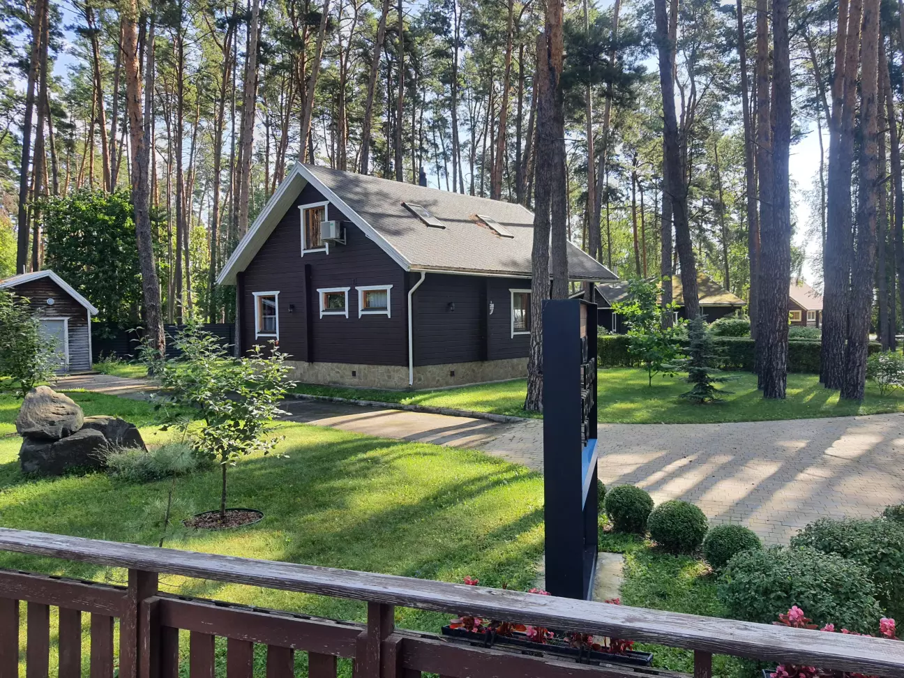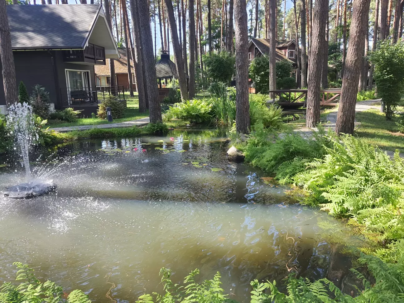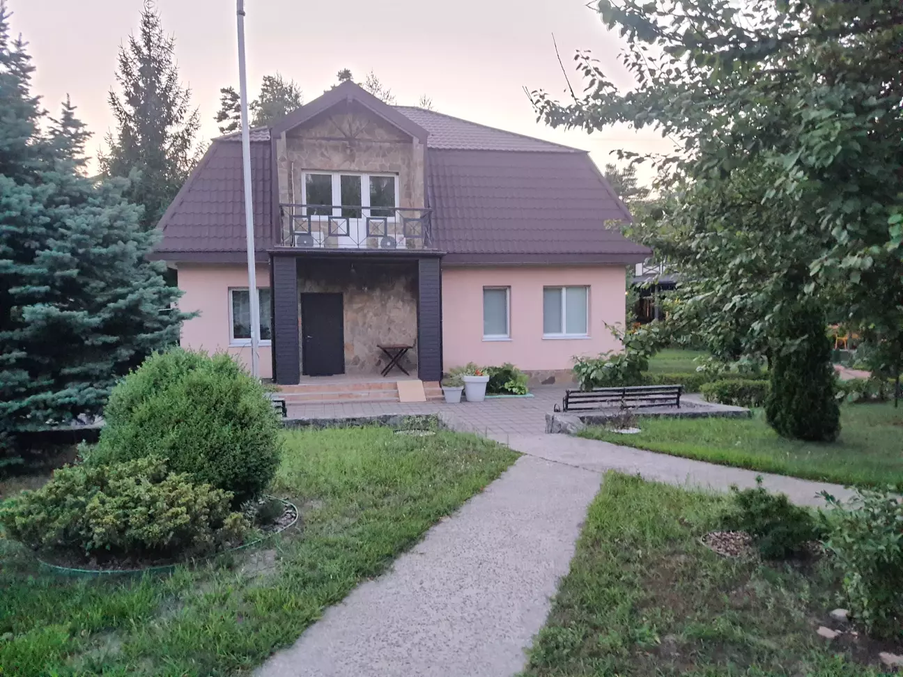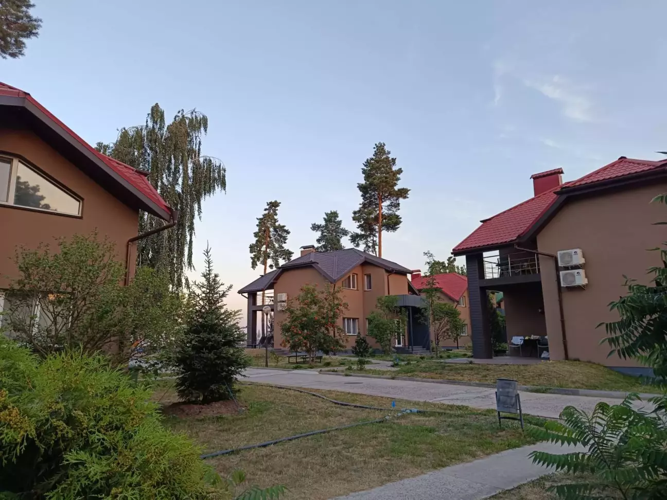 На море поїхали недалеко від дома до дачного містечка Глібівка. 2 дітей і тривала подорож то не дуже, а тут 50 км від Киева. Хто любить соснові ліси буде задоволений. Територія складається з 2 частини: котеджі на сім'ю і котеджі на декілька сімей. Басейнів 5, чисті, є аквапарк(платний окремо). Кухня добра, готують смачно. Вночі тихо. За всім дивляться, побажання клієнтів враховують. Будинок на добу 12500 грн.