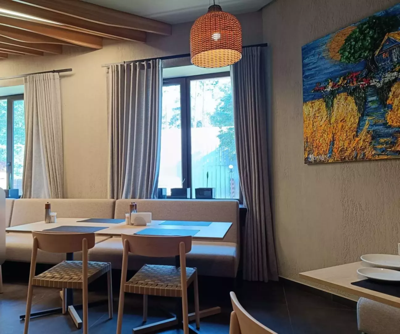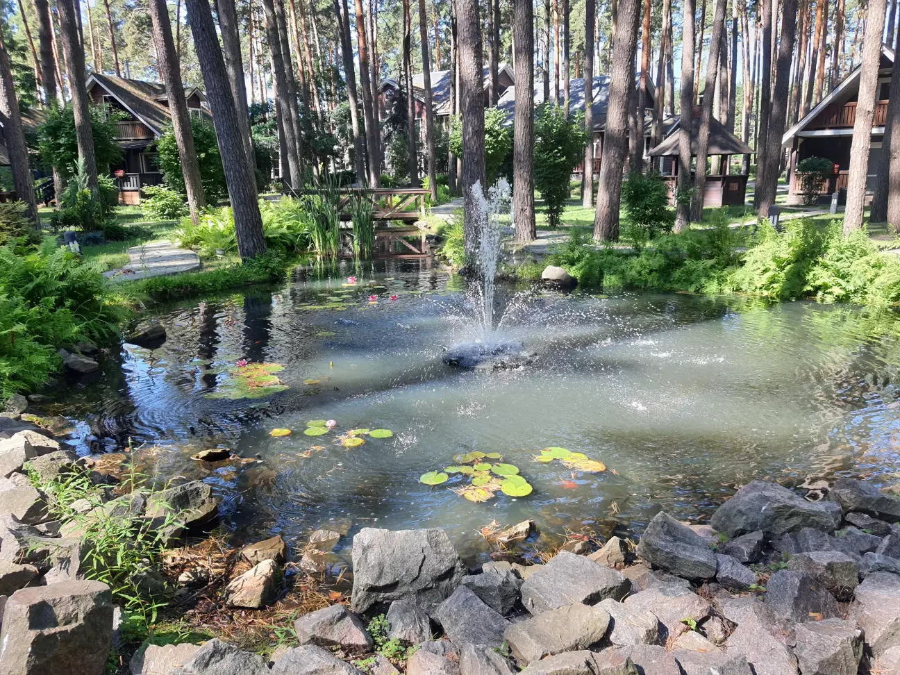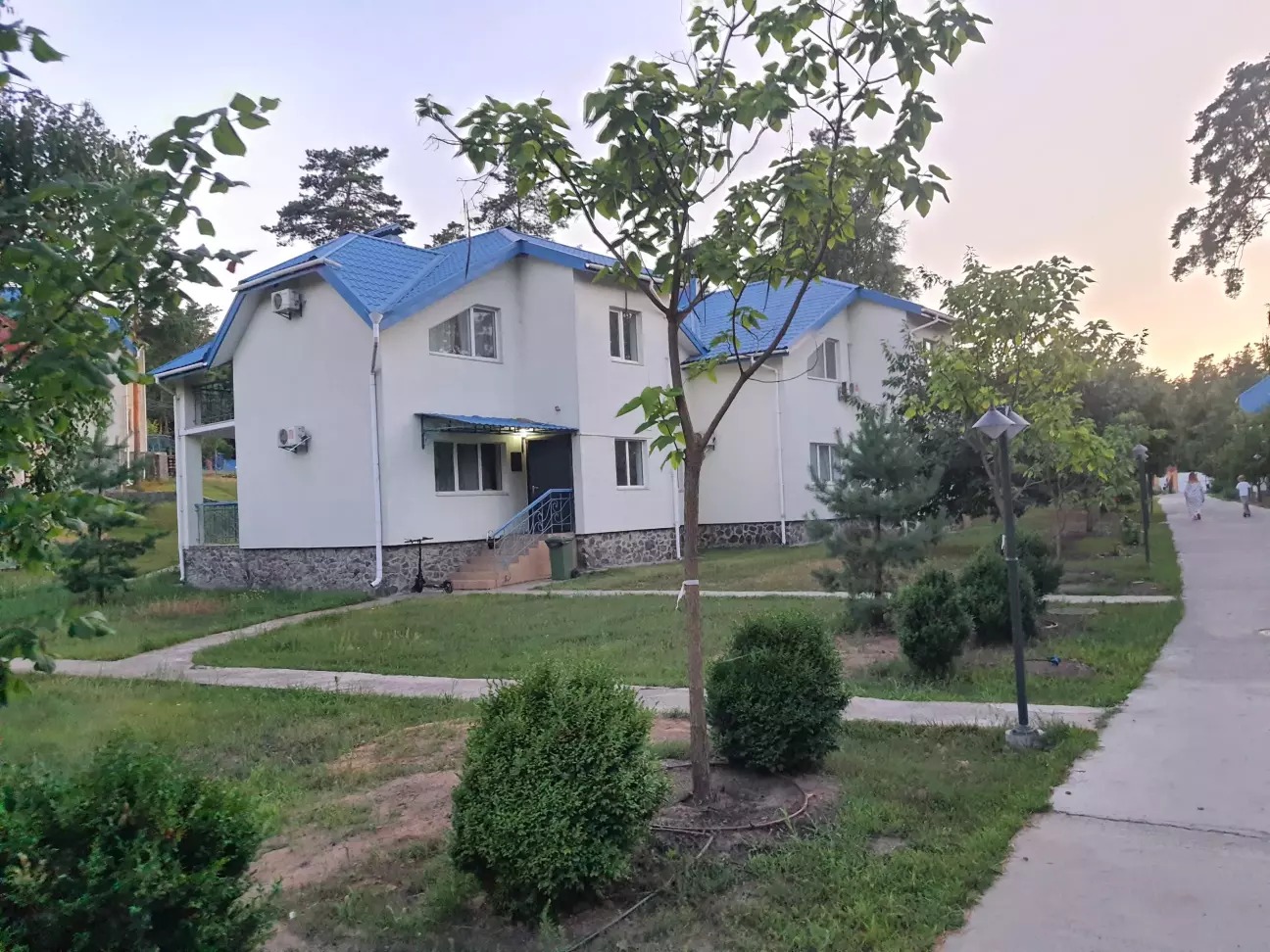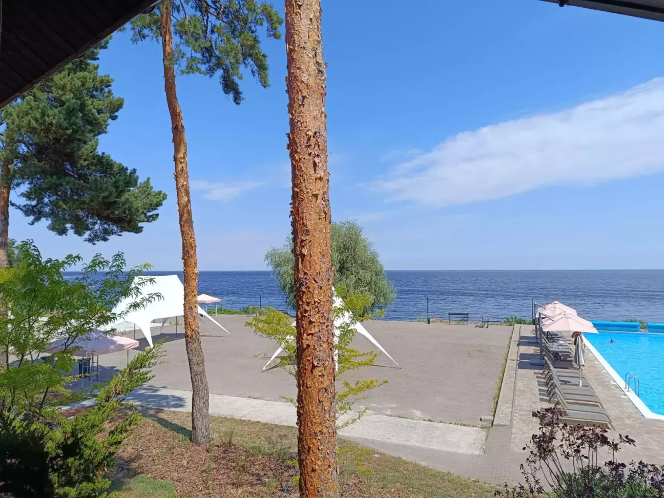 На море поїхали недалеко від дома до дачного містечка Глібівка. 2 дітей і тривала подорож то не дуже, а тут 50 км від Киева. Хто любить соснові ліси буде задоволений. Територія складається з 2 частини: котеджі на сім'ю і котеджі на декілька сімей. Басейнів 5, чисті, є аквапарк(платний окремо). Кухня добра, готують смачно. Вночі тихо. За всім дивляться, побажання клієнтів враховують. Будинок на добу 12500 грн.